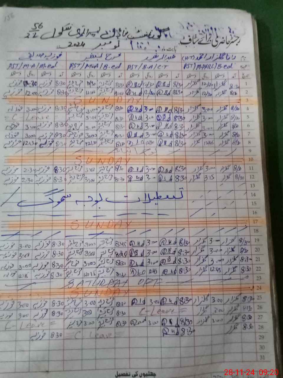 | CNIC | Full Name | Designation | R/C | Absence During Last Calender Month |