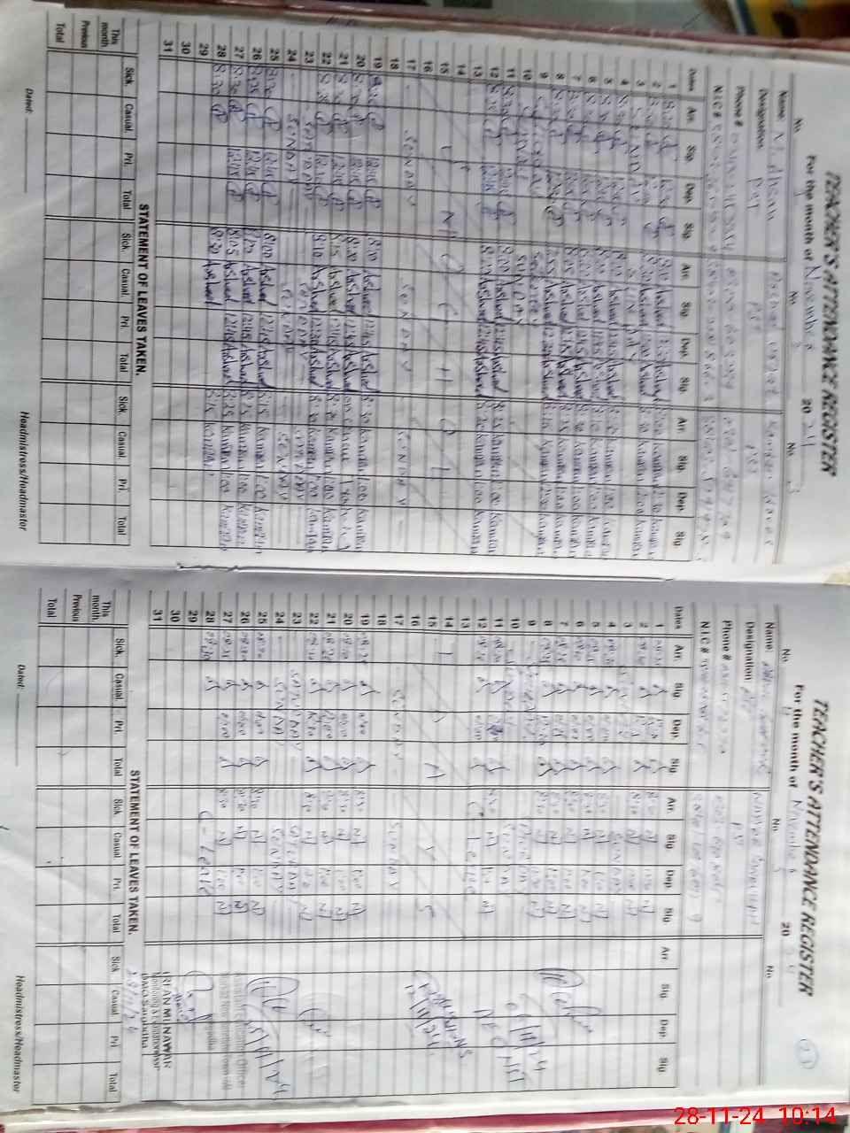 | CNIC | Full Name | Designation | R/C | Absence During Last Calender Month |