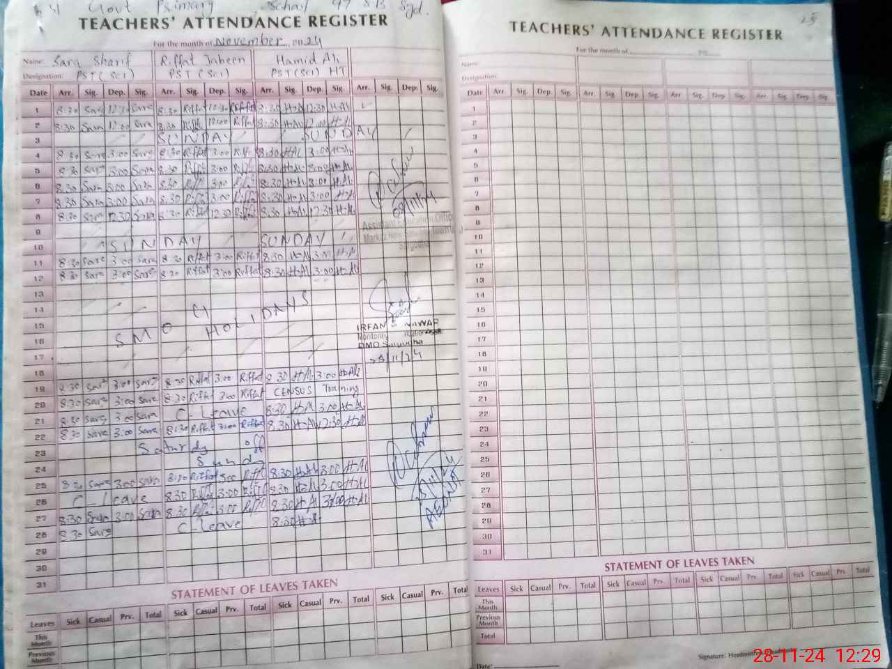 | Name: HA**** AL**** Designation: (School Headmaster's/Headmistress's) PST Phone/Cell Number: 03**** |