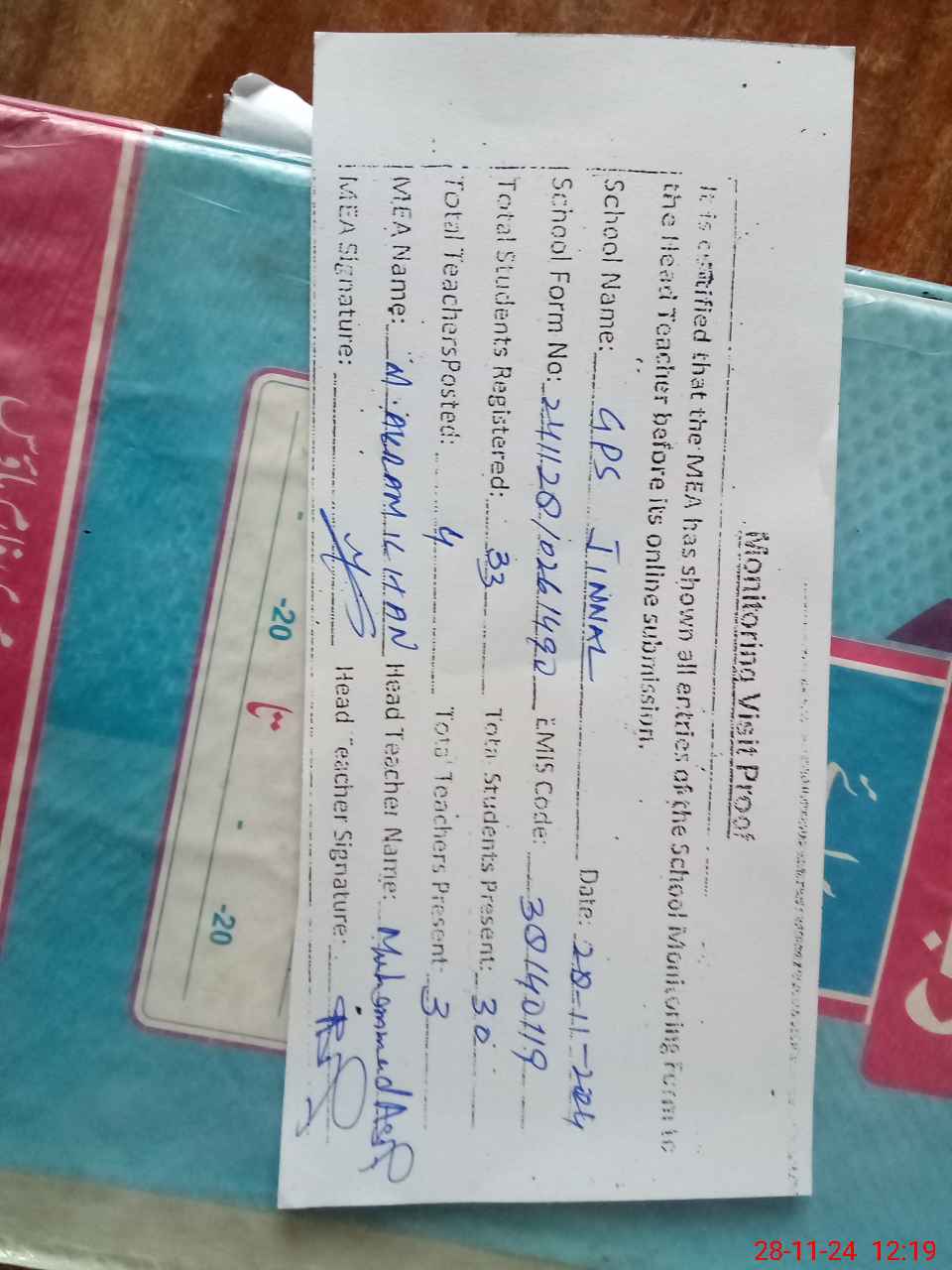 | EMIS Code: 38140119 | Name of School: GPS JINNAL | |||