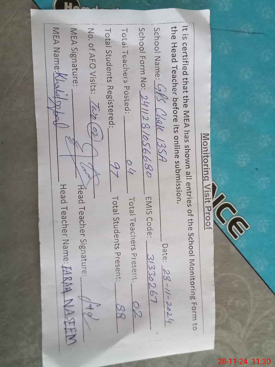 | EMIS Code: 31330267 | Name of School: GPS CHAK 135/A | |||