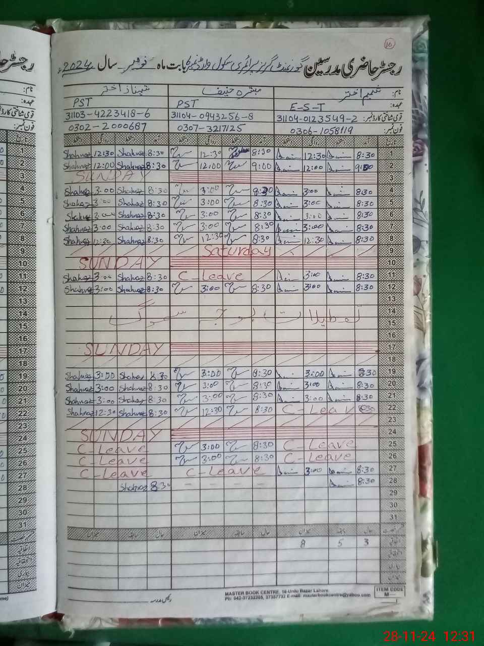 | 31**** | Sh**** Na**** | PST | Regular | 2 | 0 | 0 | 0 | 0 | 0 | 0 | 0 | 2 | Casual |