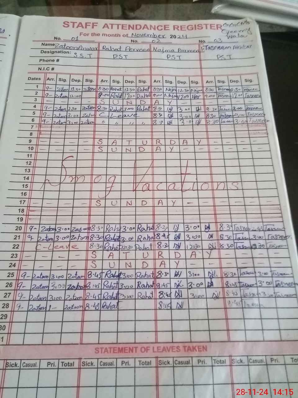| 36**** | Za**** An**** | SST | Regular | 0 | 0 | 0 | 0 | 0 | 0 | 0 | 0 | 0 | Casual |