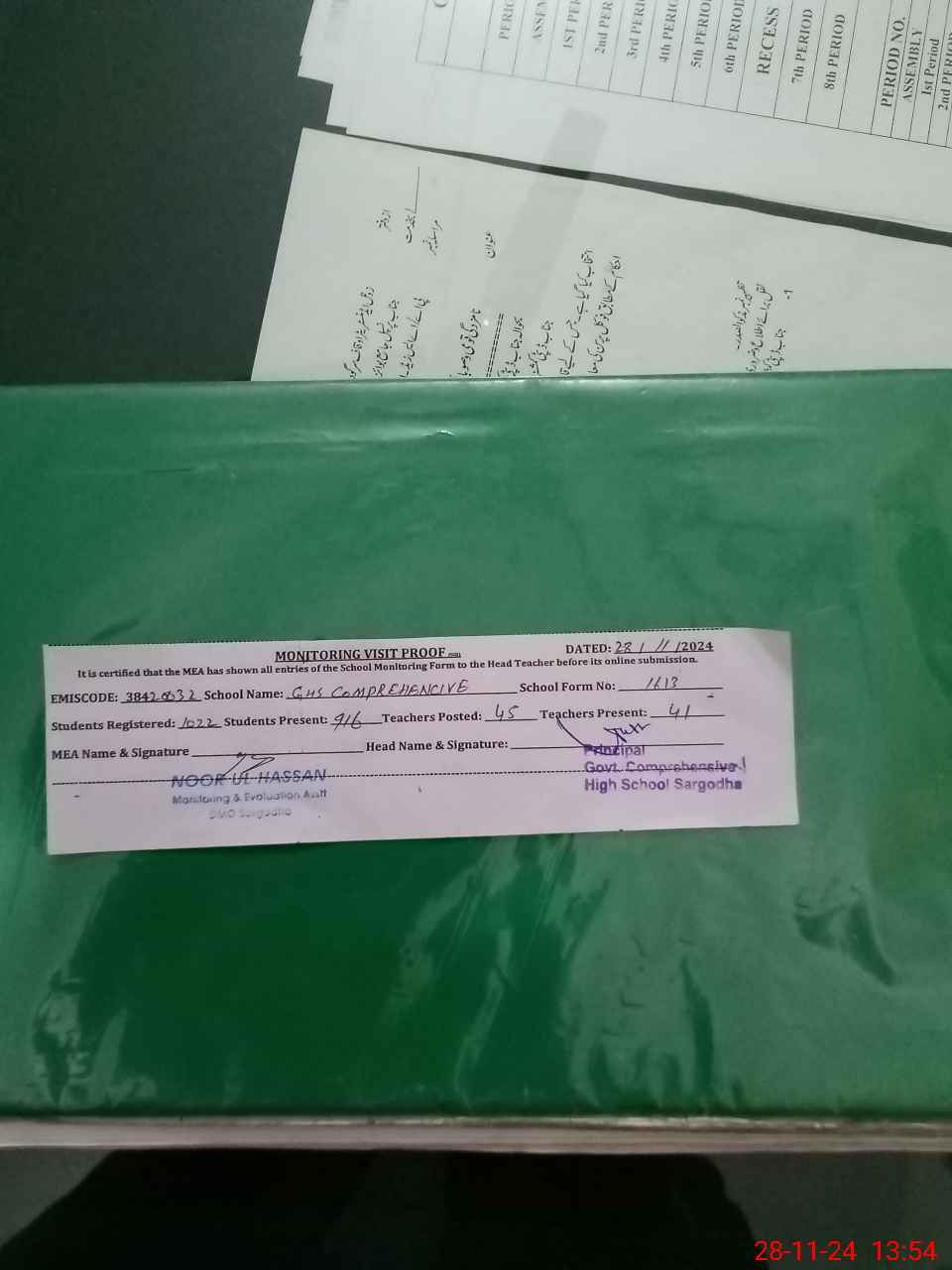| EMIS Code: 38420032 | Name of School: GHS COMPREHENSIVE SARGODHA | |||