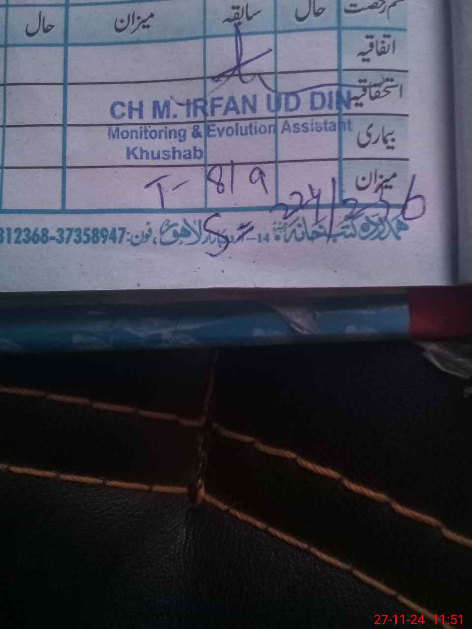 | Name: As**** Al**** Designation: (School Headmaster's/Headmistress's) Sst Phone/Cell Number: 03**** |