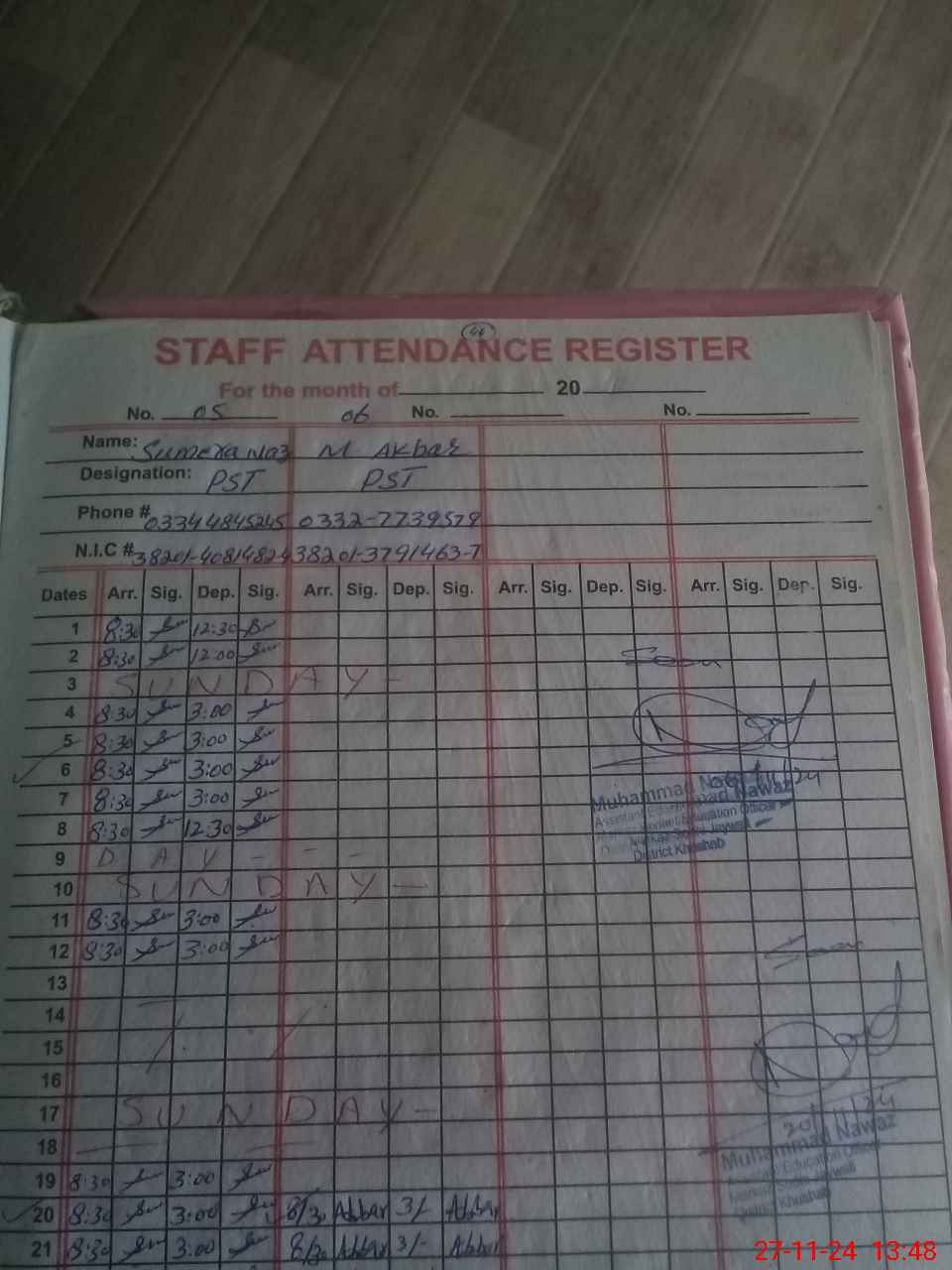 | Name: At**** Bi**** Designation: (School Headmaster's/Headmistress's) Pst Phone/Cell Number: 03**** |