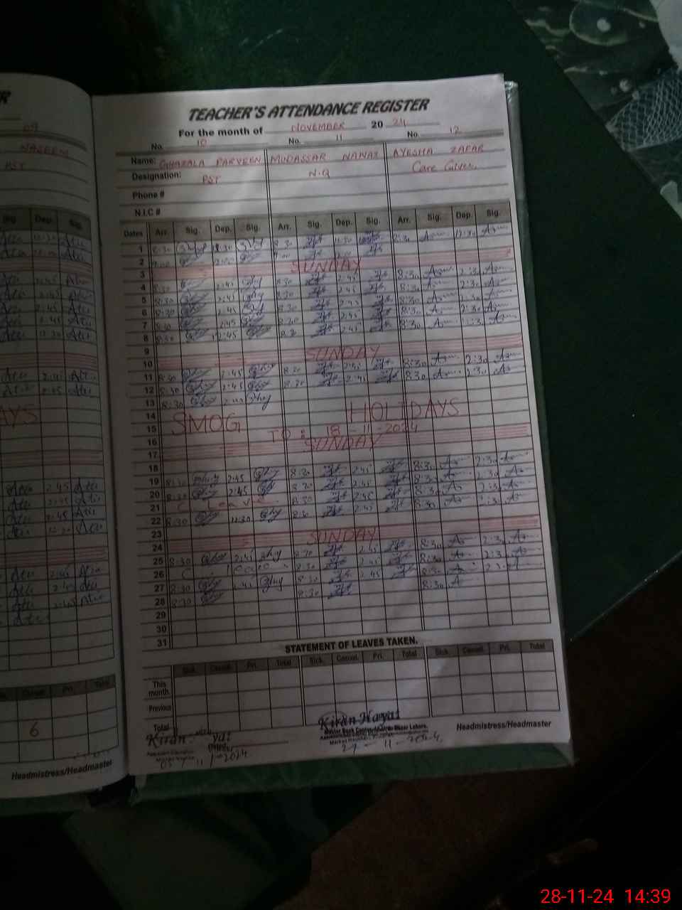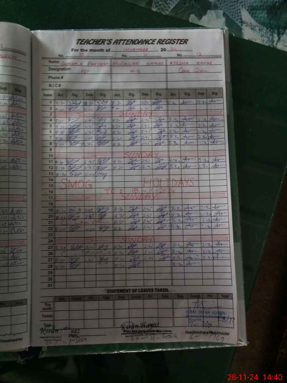 | CNIC | Full Name | Designation | R/C | Absence During Last Calender Month |