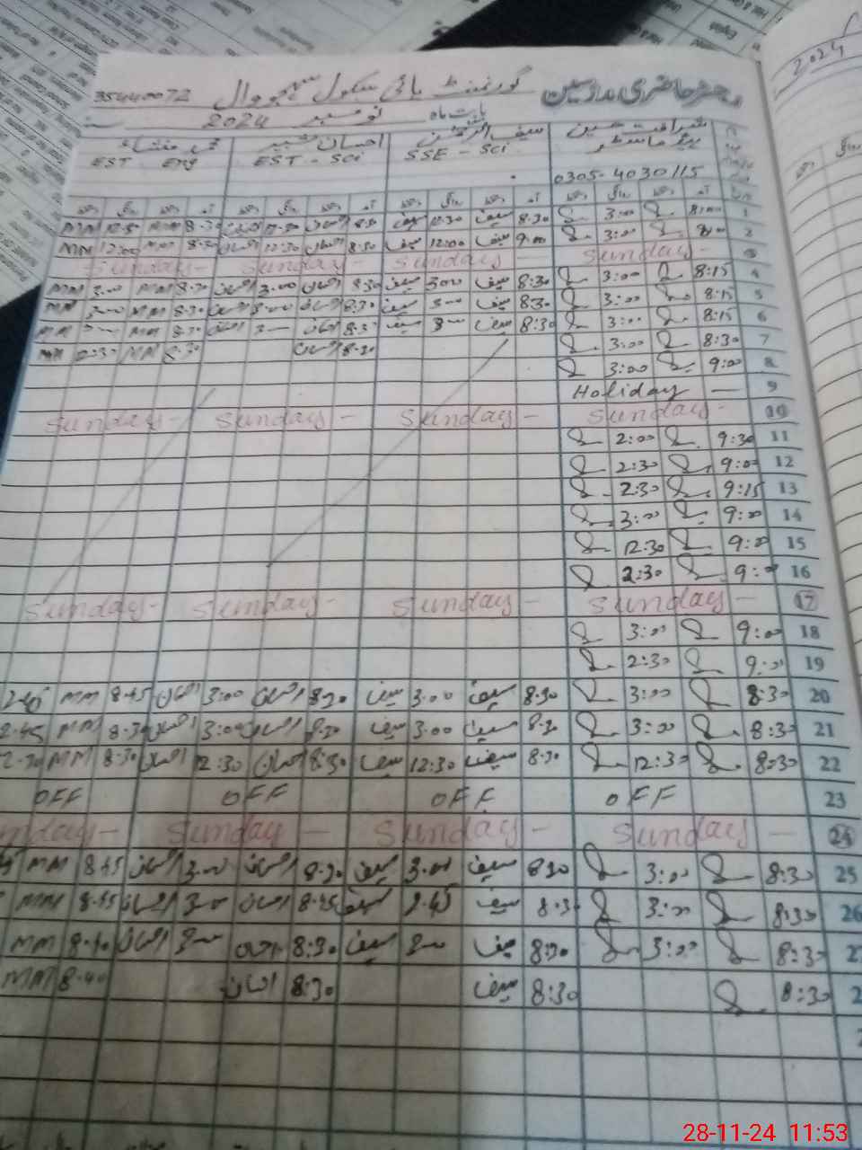 | Name: SH**** HU**** Designation: (School Headmaster's/Headmistress's) SST Phone/Cell Number: 03**** |