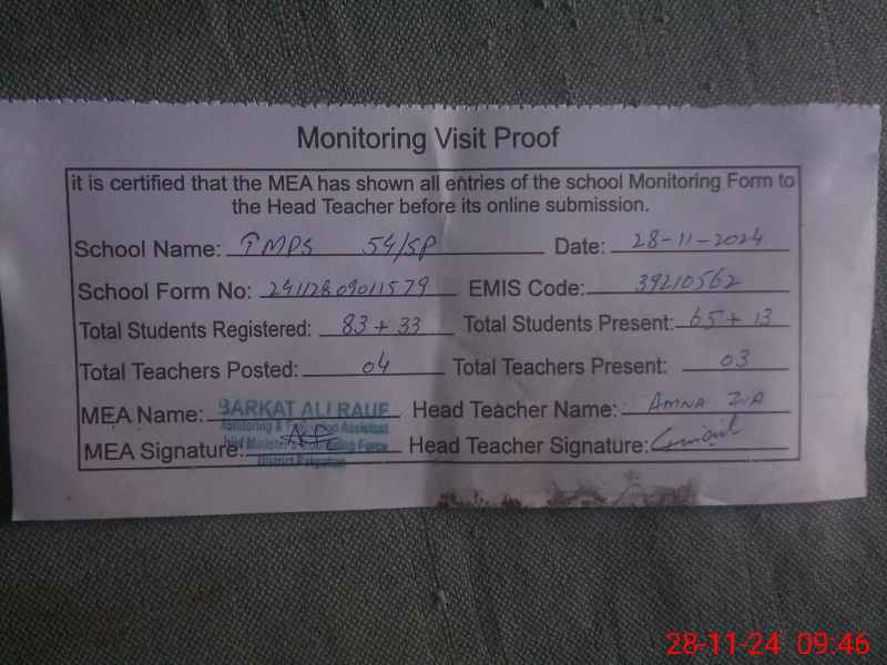| EMIS Code: 39210562 | Name of School: GMPS 54/SP | |||