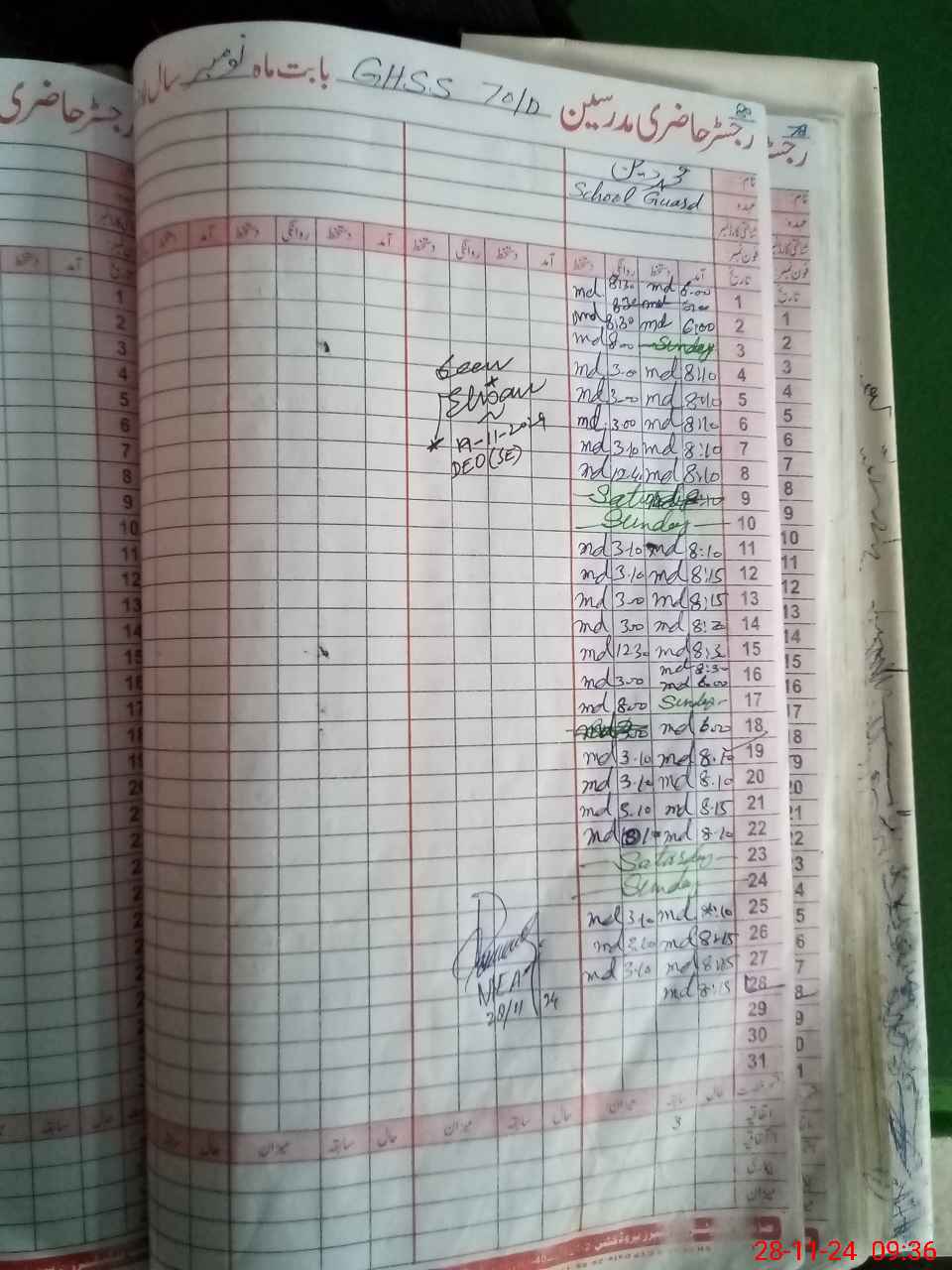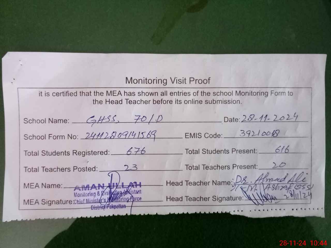 | Attendance Register | Head Teacher | MEA with School | Visit Proof |