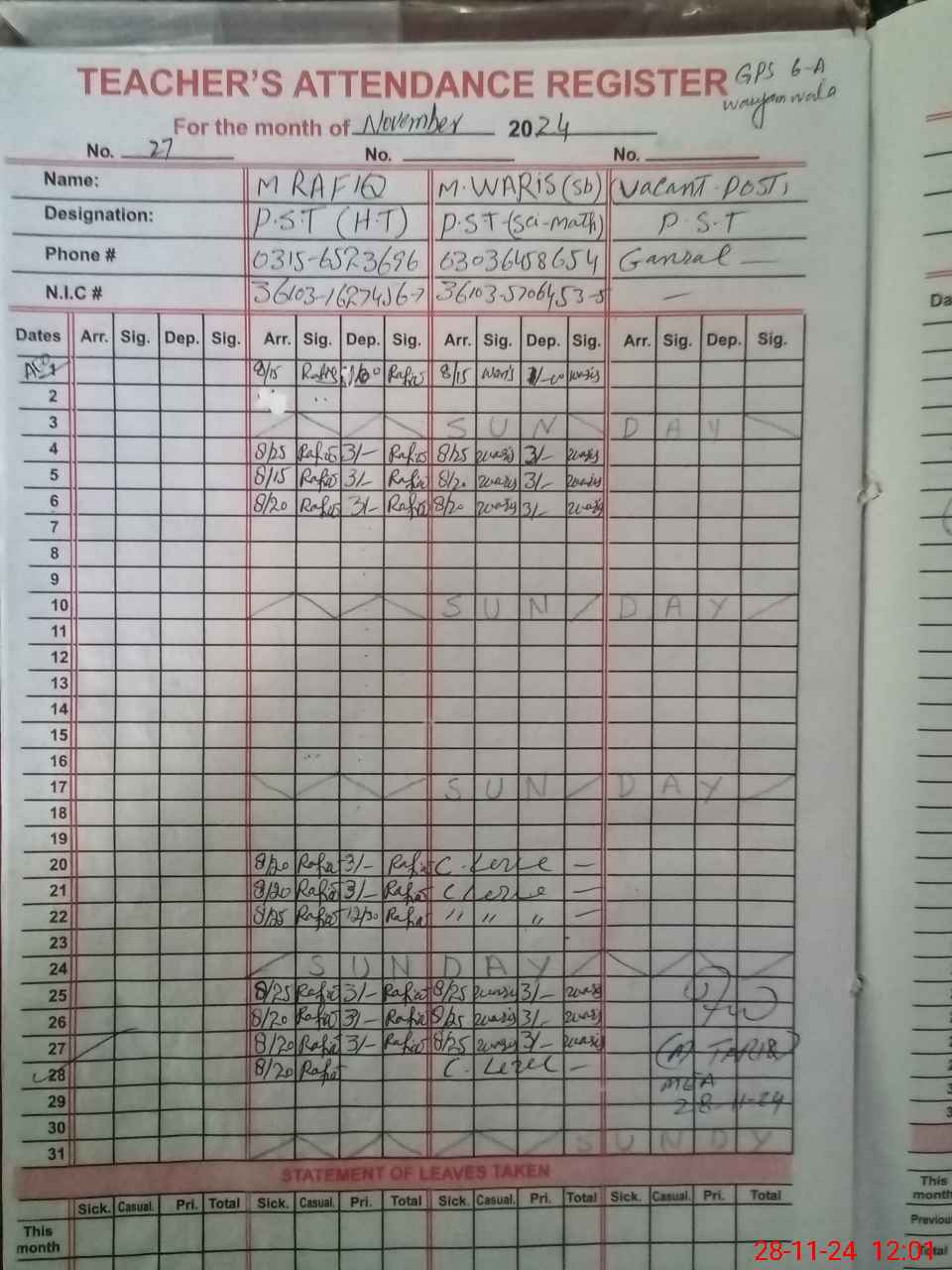 | Name: Mu**** Wa**** Designation: (School Headmaster's/Headmistress's) PST Phone/Cell Number: 03**** |