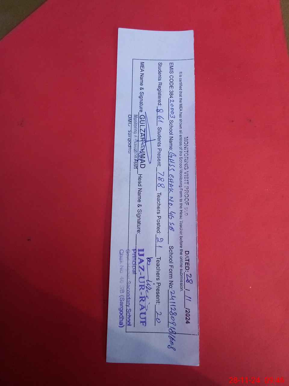 | EMIS Code: 38420003 | Name of School: GHSS CHAK NO.46 SB | |||