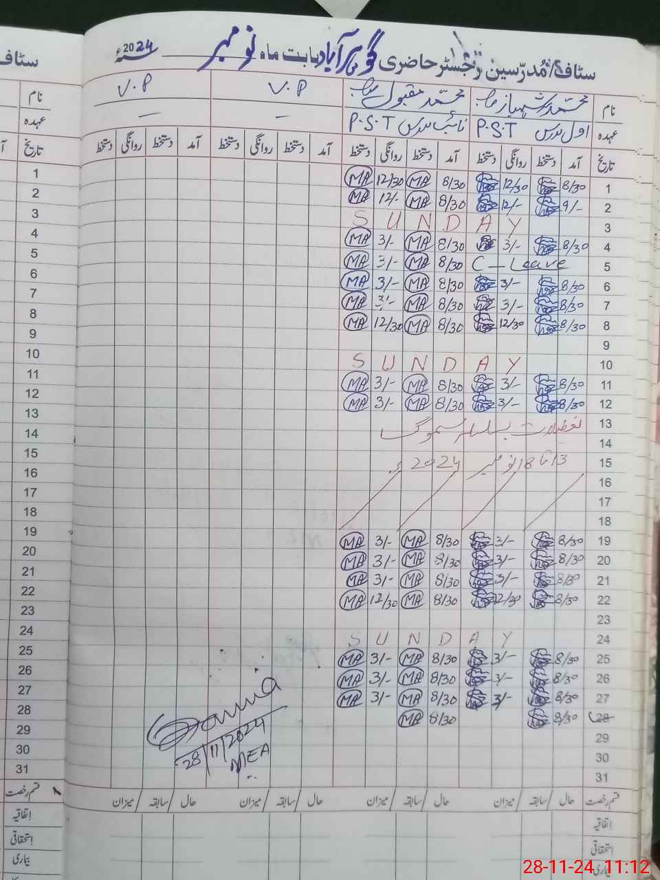 | Name: MU**** SH**** Designation: (School Headmaster's/Headmistress's) PST Phone/Cell Number: 03**** |