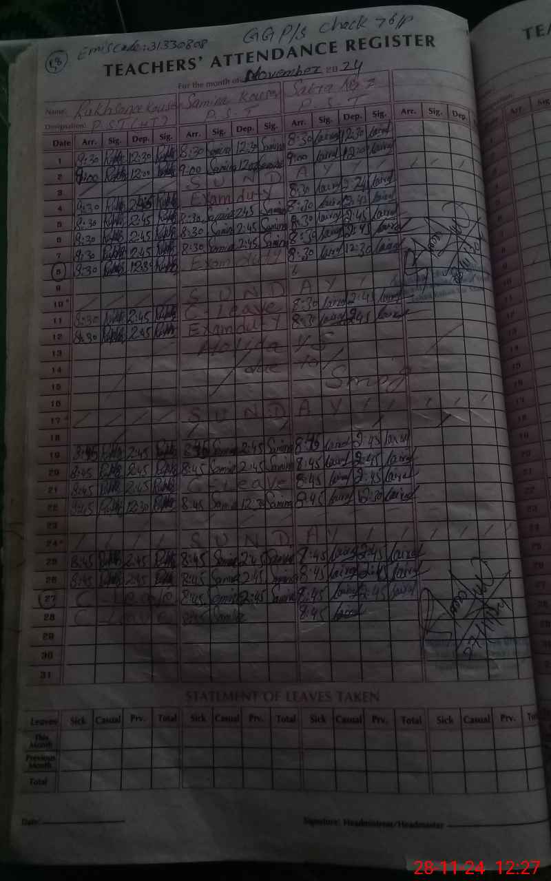| Attendance Register | Head Teacher | MEA with School | Visit Proof |