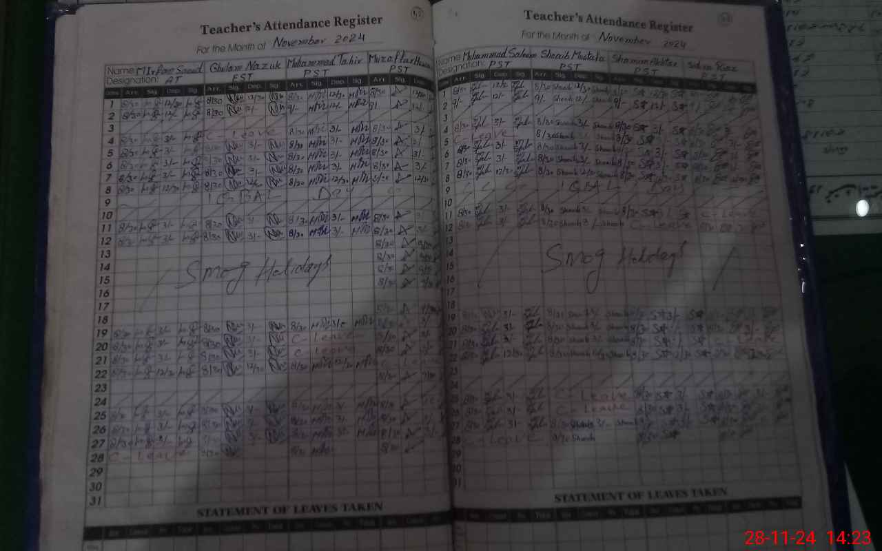 | Attendance Register | Head Teacher | MEA with School | Visit Proof |