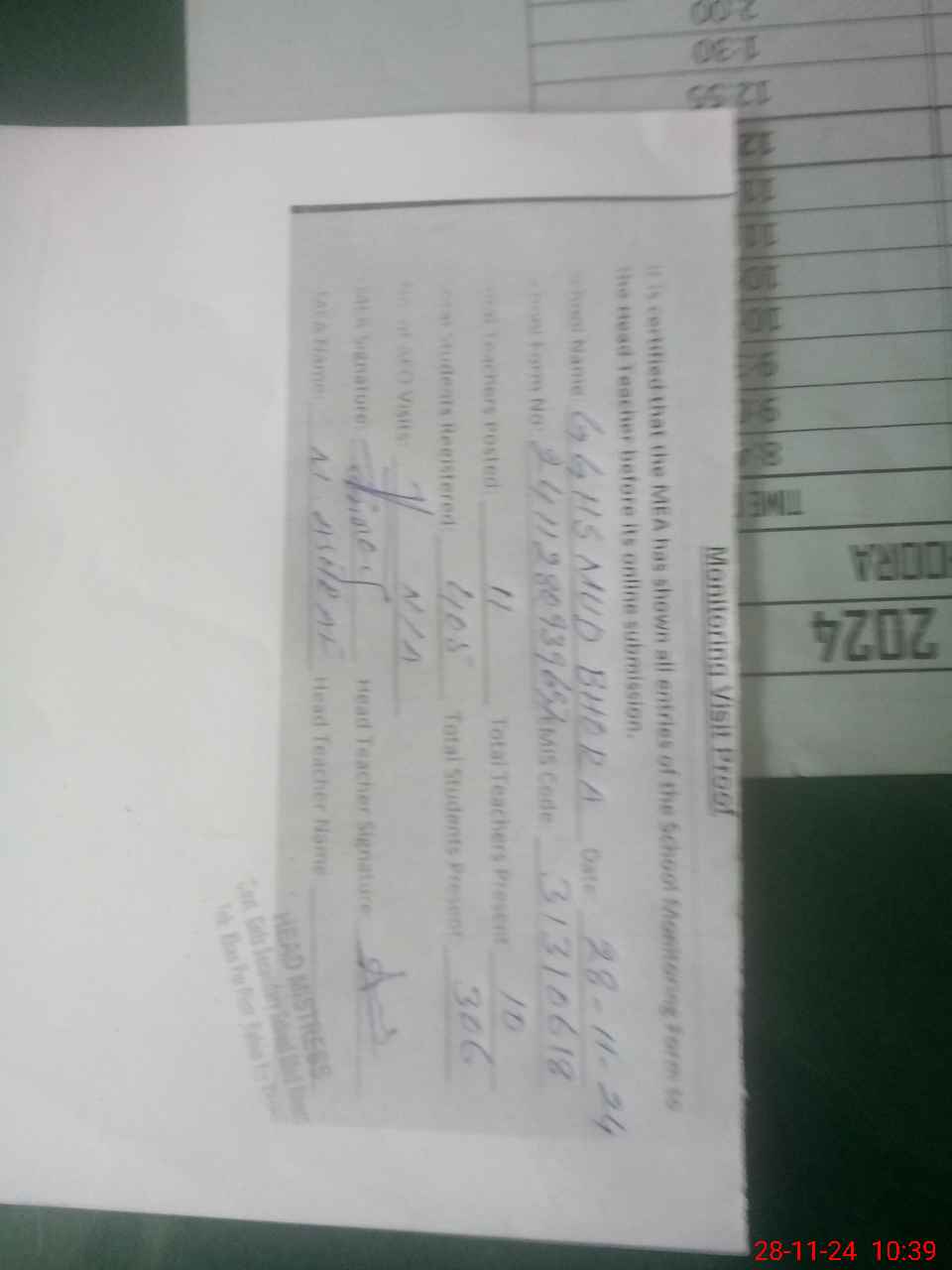 | EMIS Code: 31310618 | Name of School: GGHS MUD BHOORA | |||