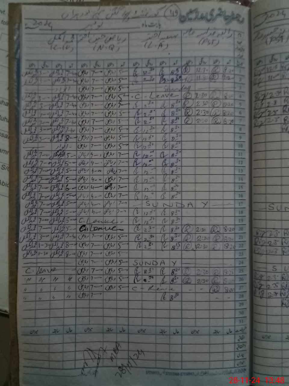 | CNIC | Full Name | Designation | R/C | Absence During Last Calender Month |