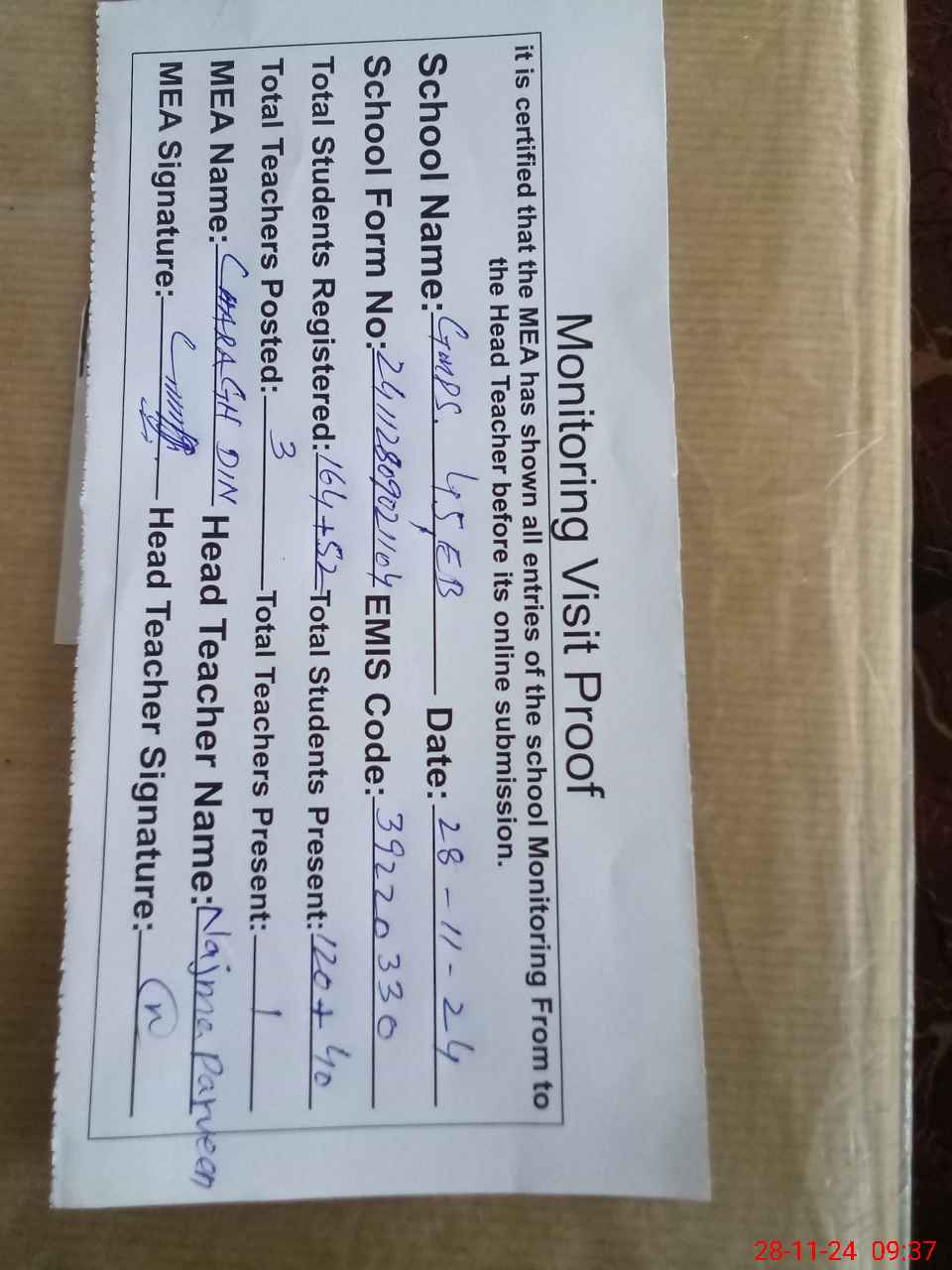 | EMIS Code: 39220330 | Name of School: GMPS 45 EB | |||