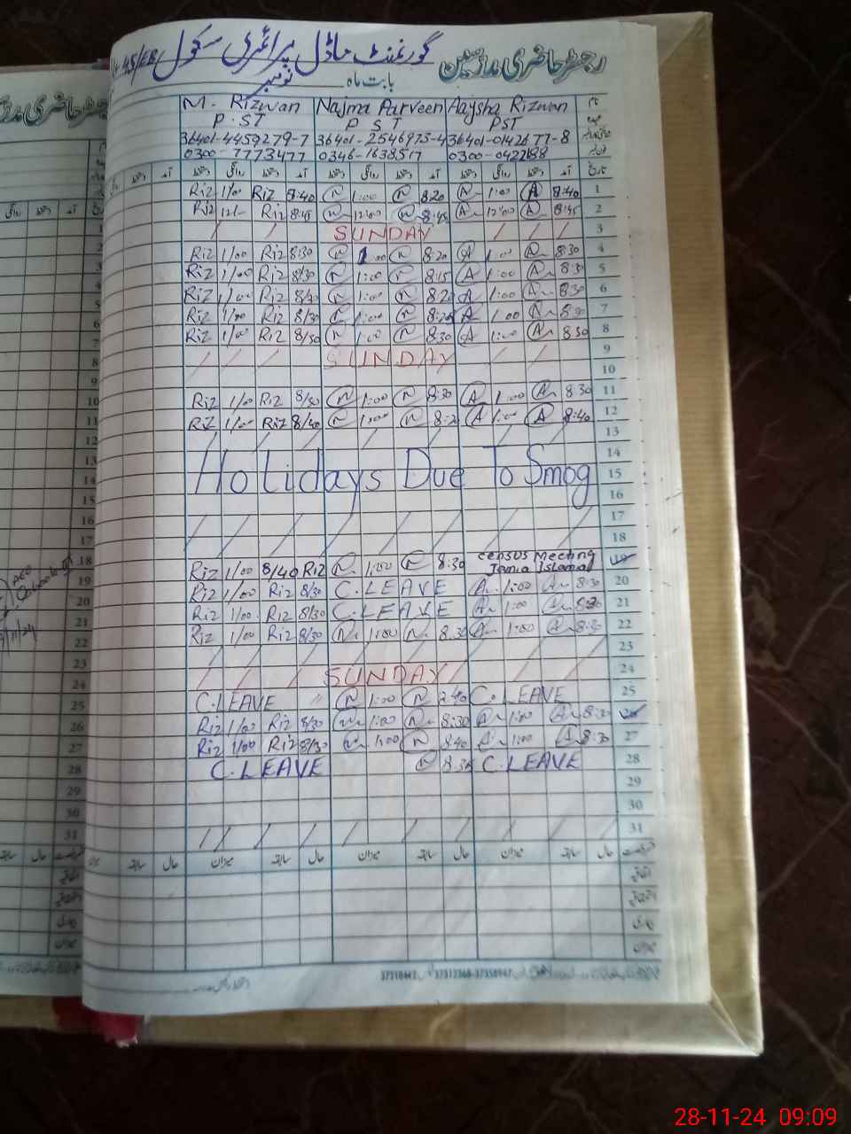 | Remarks (Use Separate Page if Required): Teacher AAYSHA RIZWAN AND M RIZWAN ABSENT Leave not shown on SIS | |||||