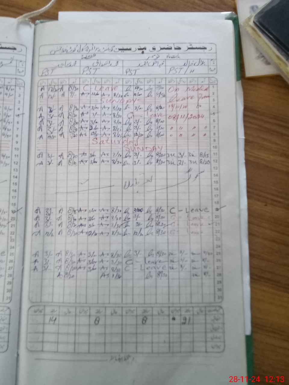 | Leave | Duty | Absent | Maternity | Medical | Ex- Pak |