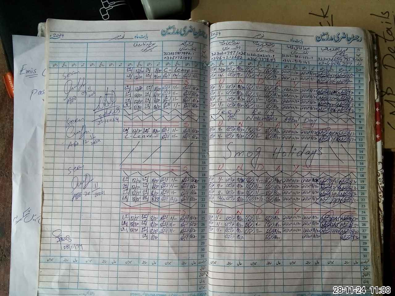 | CNIC | Full Name | Designation | R/C | Absence During Last Calender Month |