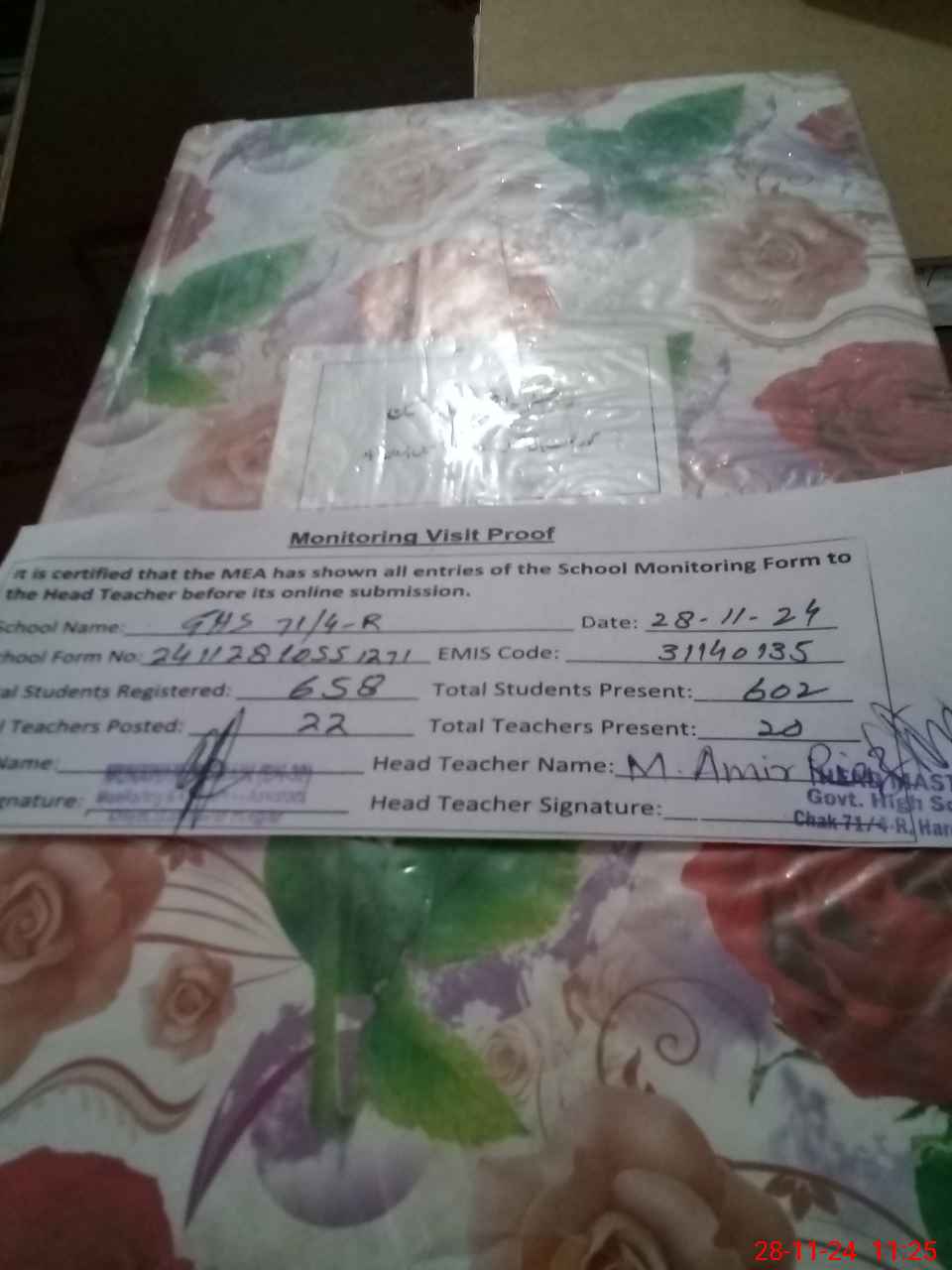 | EMIS Code: 31140135 | Name of School: GHS CHAK NO 71/4-R | |||