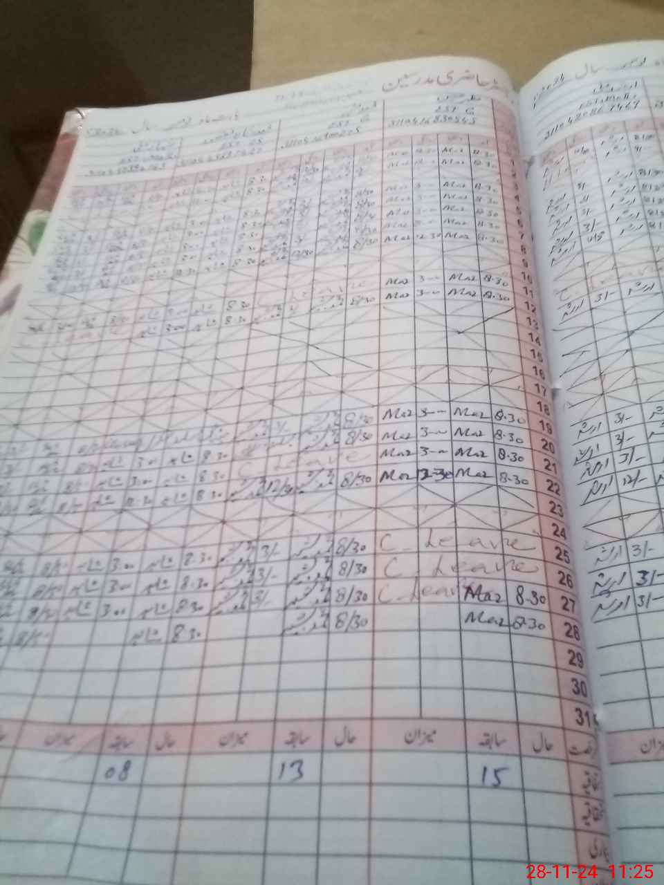 | Leave | Duty | Absent | Maternity | Medical | Ex- Pak |