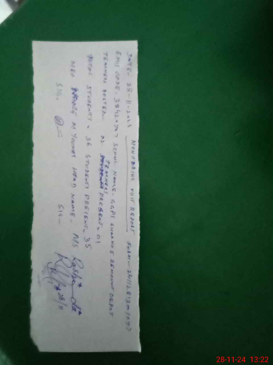 | Monitoring Date: 28-11-2024 | Start Time: 28-11-2024 01:00 PM | End Time: 28-11-2024 01:23 PM | Name of MEA: MU**** YO**** | |