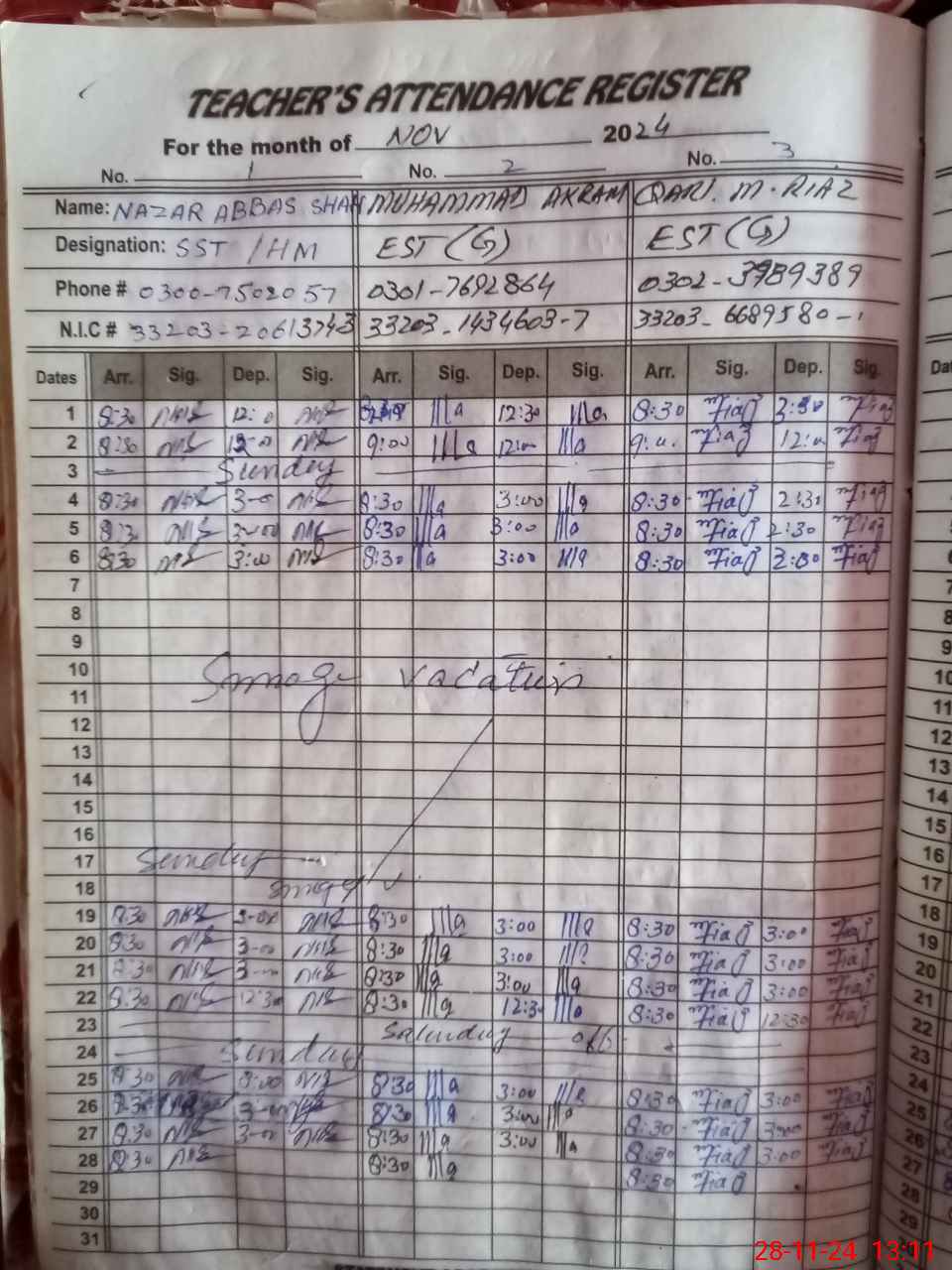| Name: NA**** AB**** SH**** Designation: (School Headmaster's/Headmistress's) SST Phone/Cell Number: 03**** |