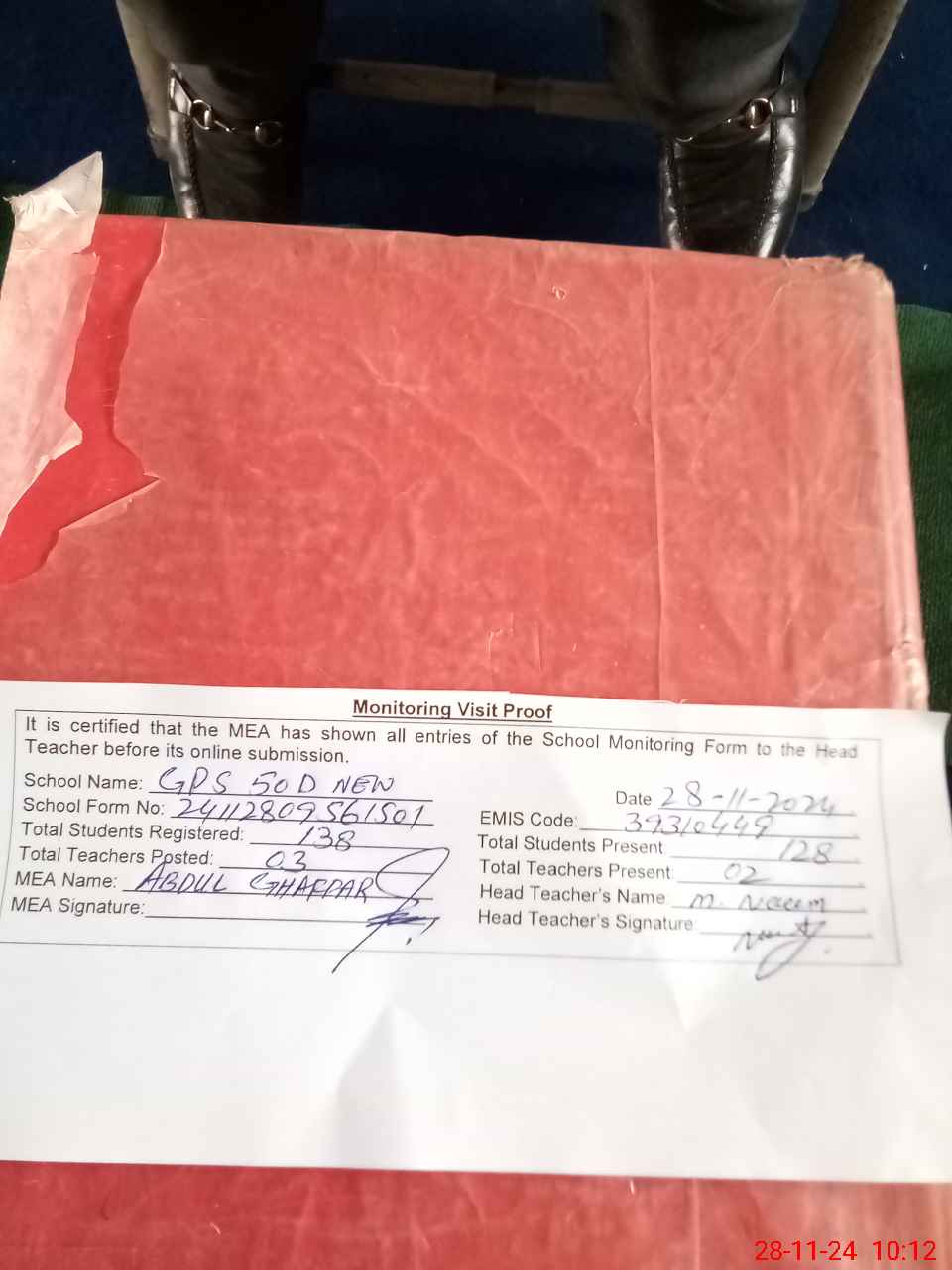 | EMIS Code: 39310449 | Name of School: GPS CHAK NO. 50-D NEW | |||