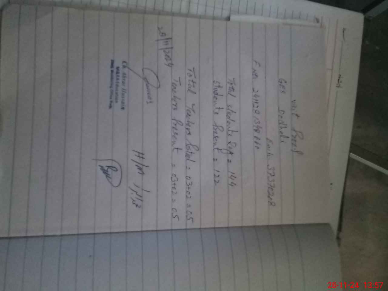 | Name: MU**** IB**** Designation: (School Headmaster's/Headmistress's) PST Phone/Cell Number: 03**** |