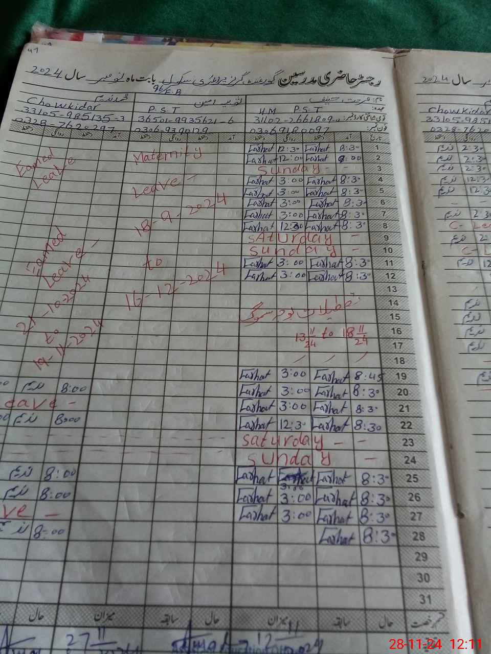 | Name: FA**** HA**** Designation: (School Headmaster's/Headmistress's) PST Phone/Cell Number: 03**** |