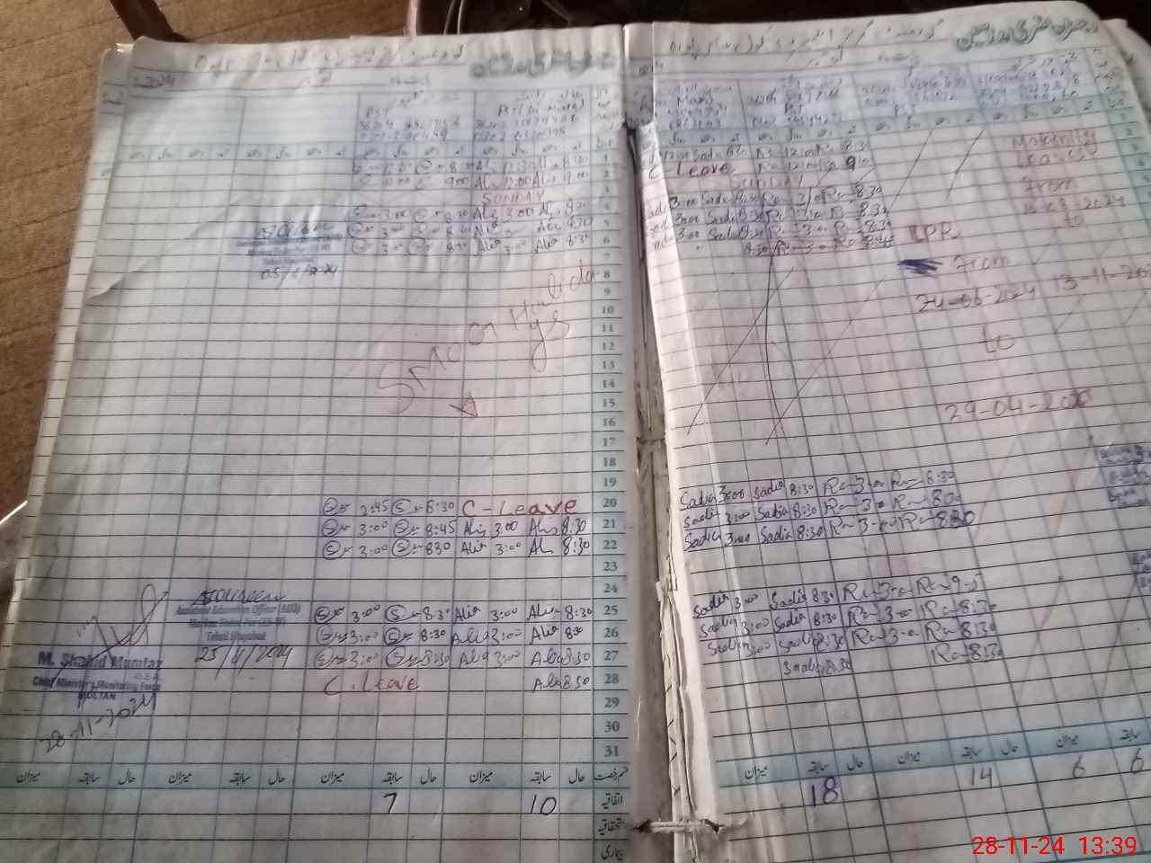 | Leave | Duty | Absent | Maternity | Medical | Ex- Pak |