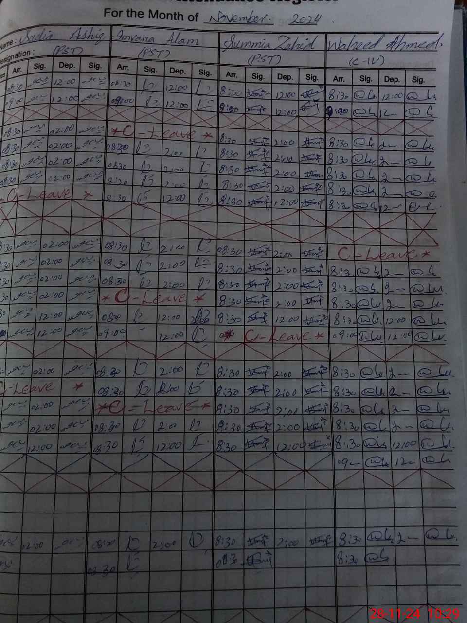 | CNIC | Full Name | Designation | R/C | Absence During Last Calender Month |