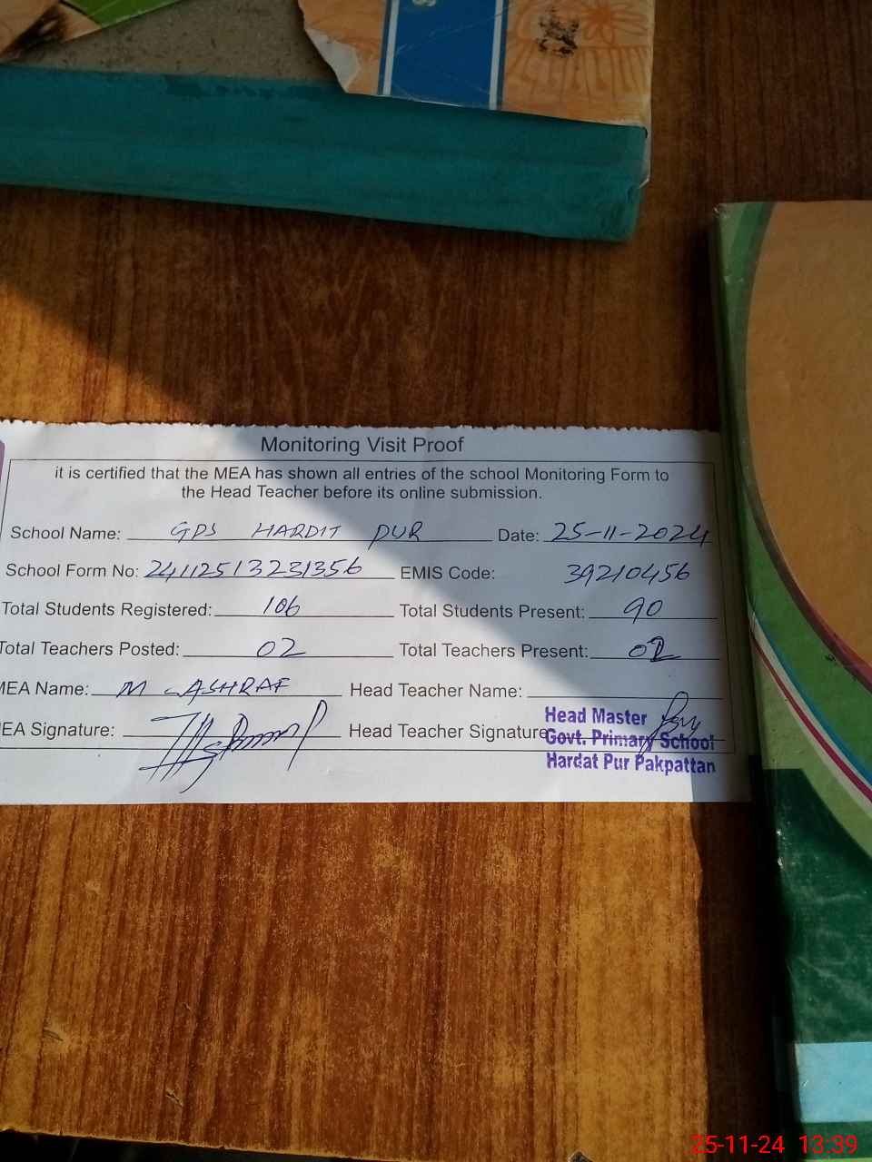 | EMIS Code: 39210456 | Name of School: GPS HARDIT PUR | |||
