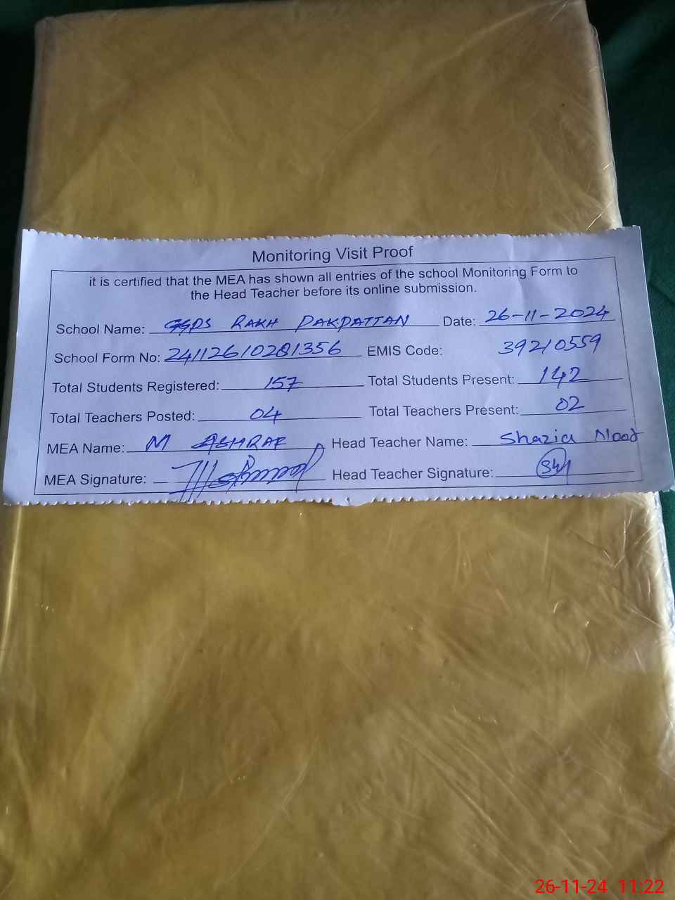| EMIS Code: 39210559 | Name of School: GGPS RAKH PAKPATTAN | |||