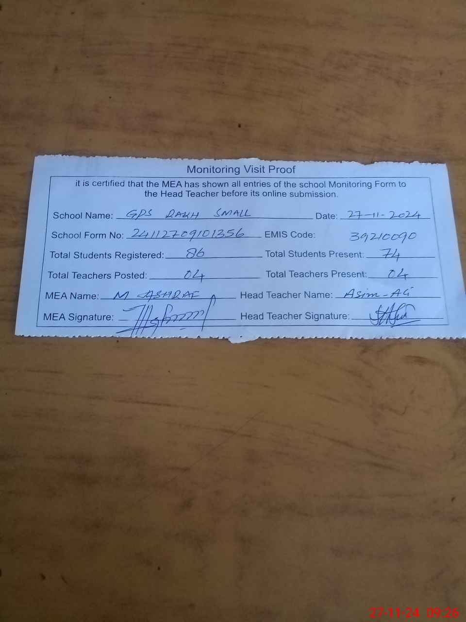 | EMIS Code: 39210090 | Name of School: GPS RAKH SMALL P/O 17/SP PAKPATTAN | |||