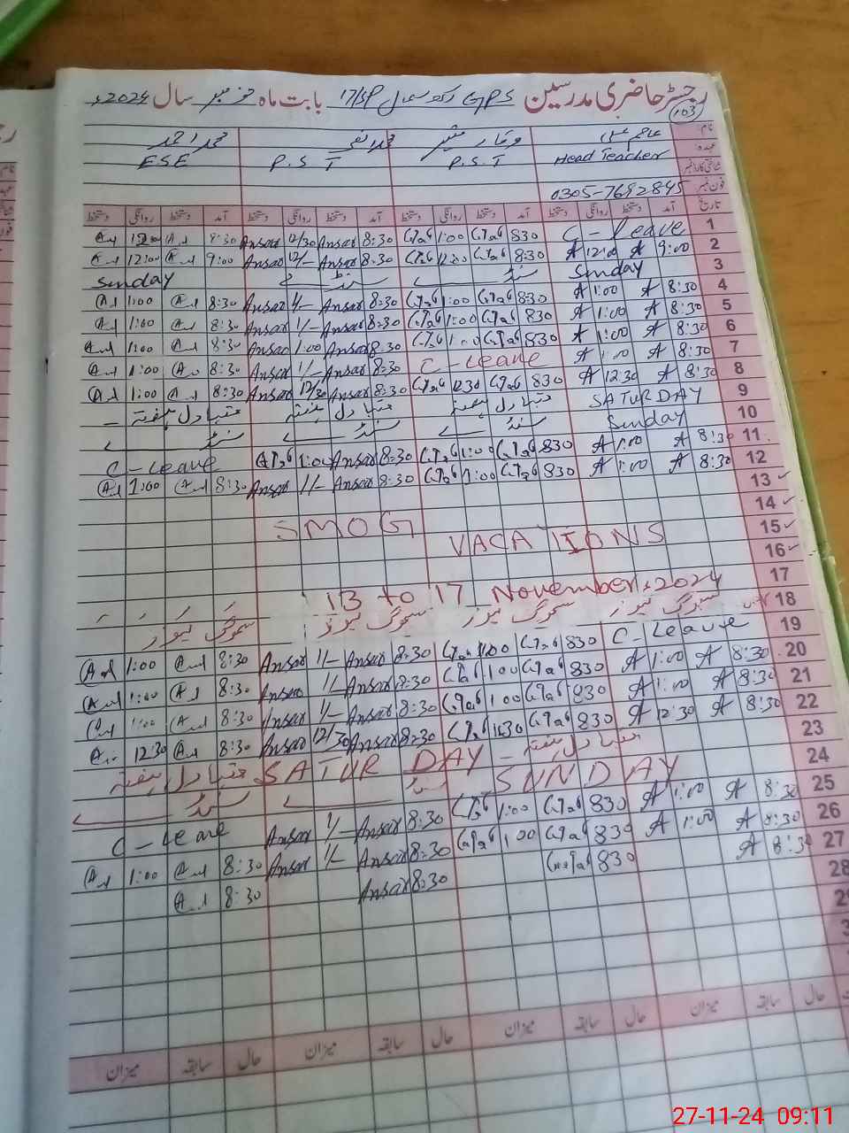 | Name: As**** Al**** Designation: (School Headmaster's/Headmistress's) PST Phone/Cell Number: 03**** |