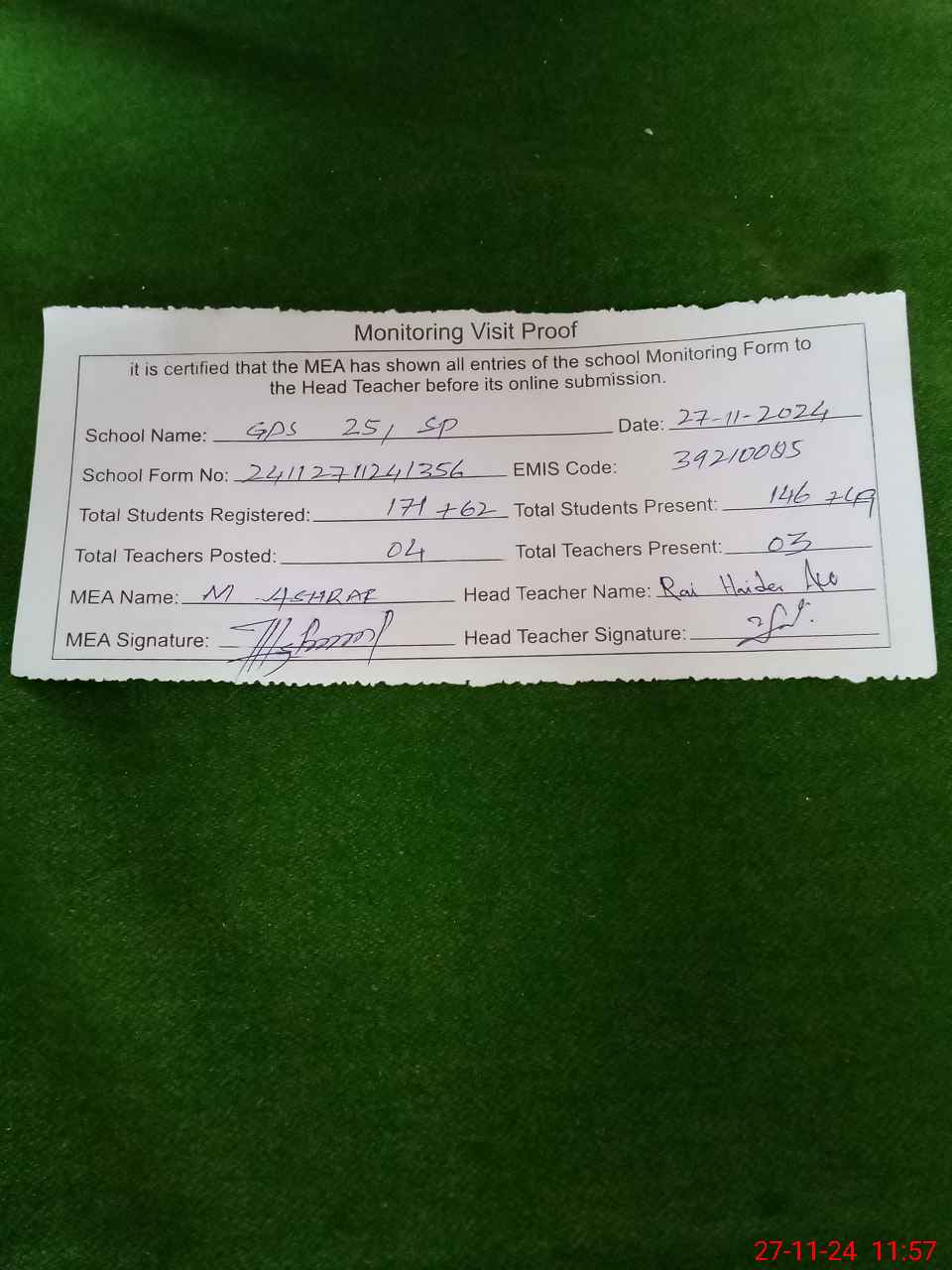 | EMIS Code: 39210085 | Name of School: GPS 25/SP PAKPATTAN | |||