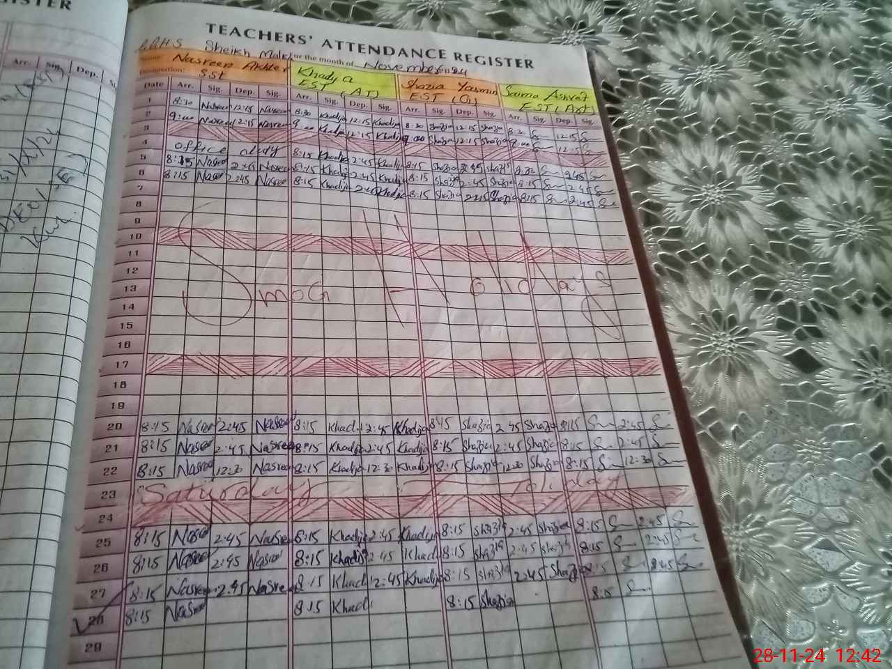 | CNIC | Full Name | Designation | R/C | Absence During Last Calender Month |