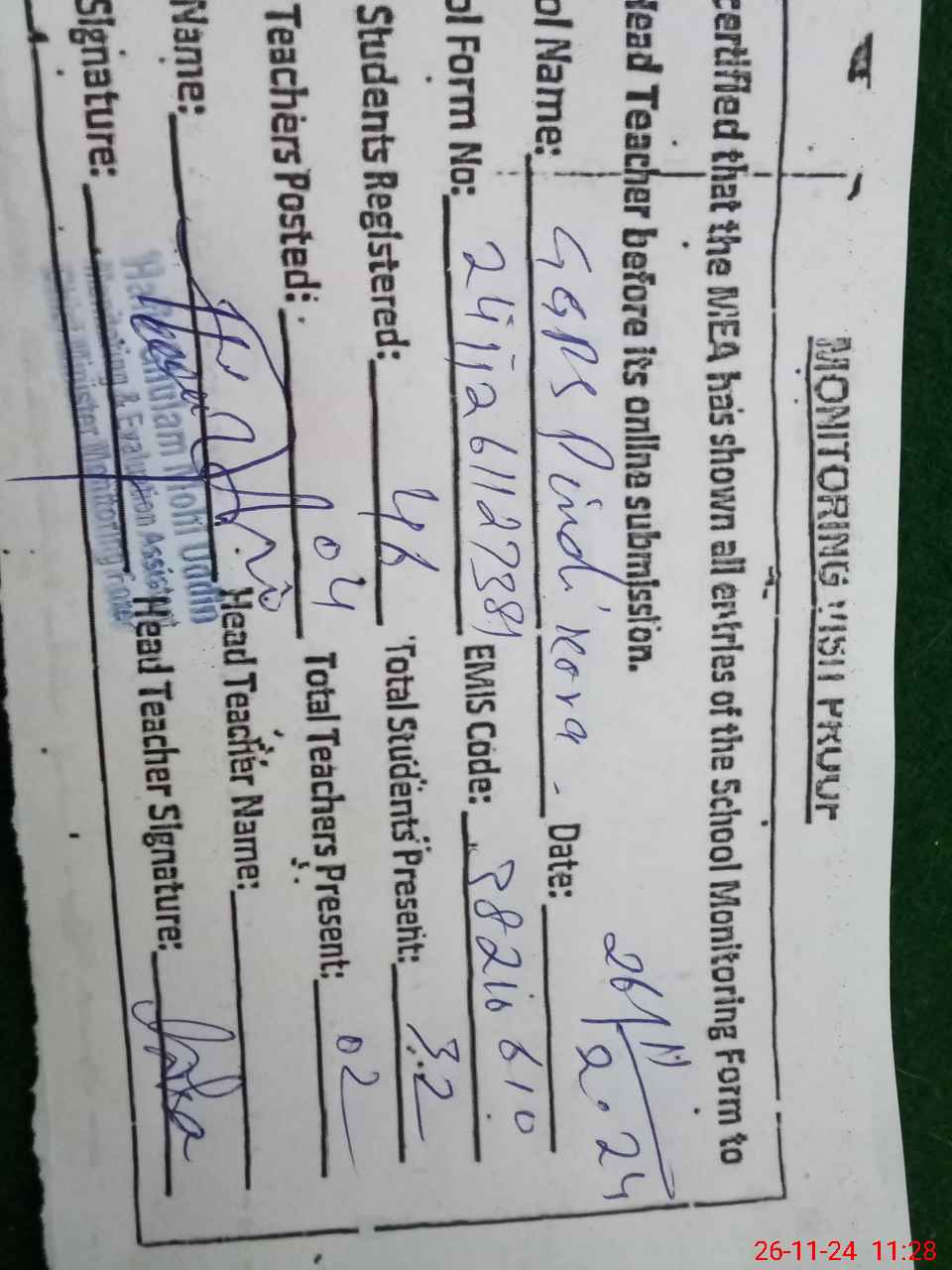 | EMIS Code: 38210610 | Name of School: GGPS PINDI KORA | |||
