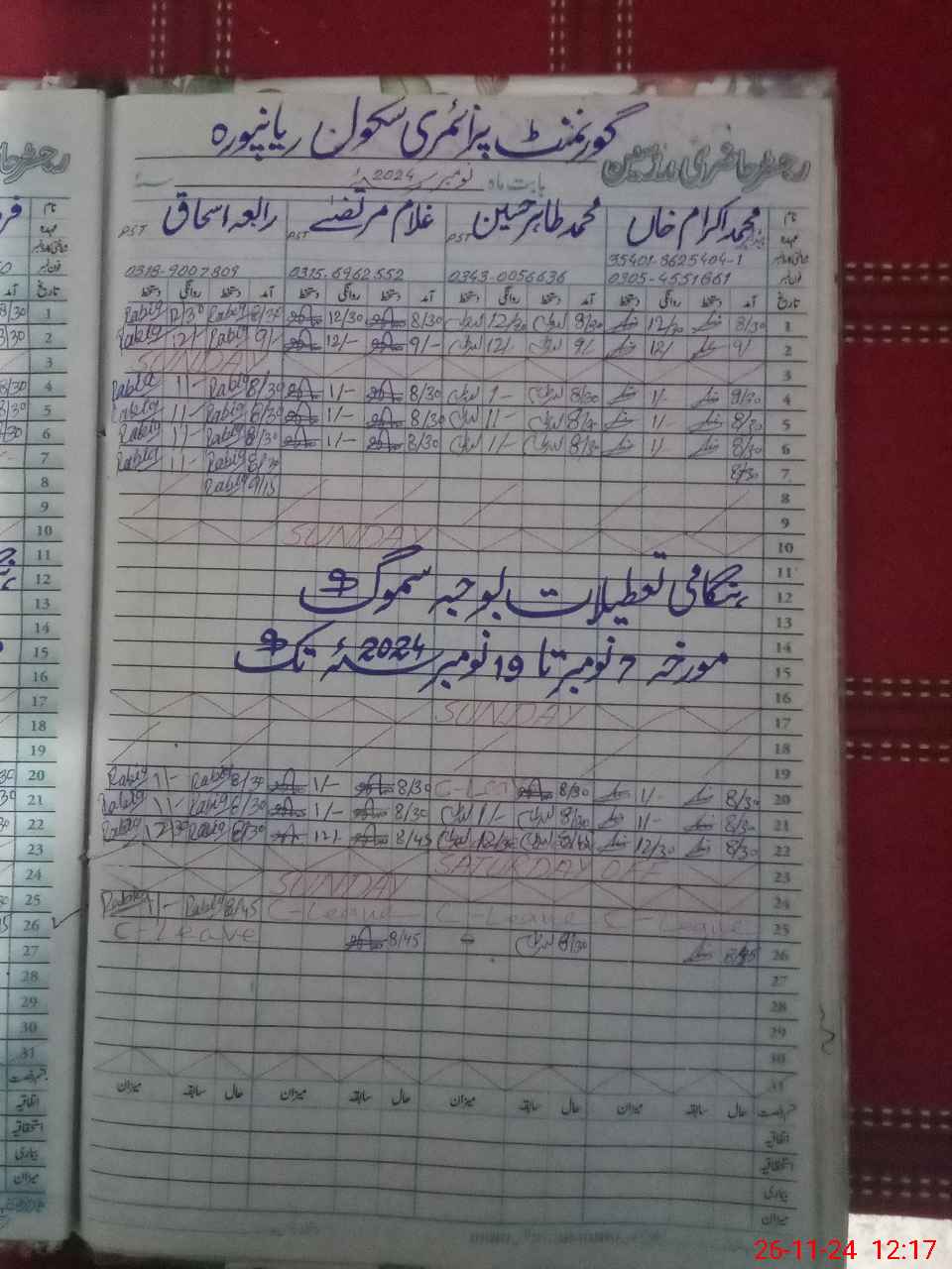 | Name: Mu**** Ik**** Kh**** Designation: (School Headmaster's/Headmistress's) PTC/JV Phone/Cell Number: 03**** |