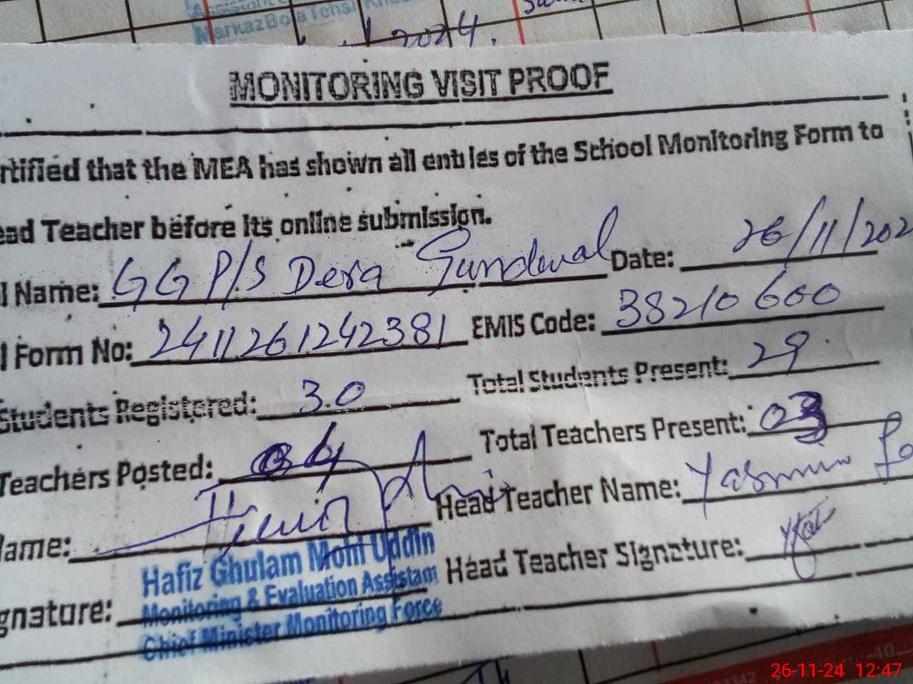 | EMIS Code: 38210600 | Name of School: GGPS DERA GANDWAL | |||