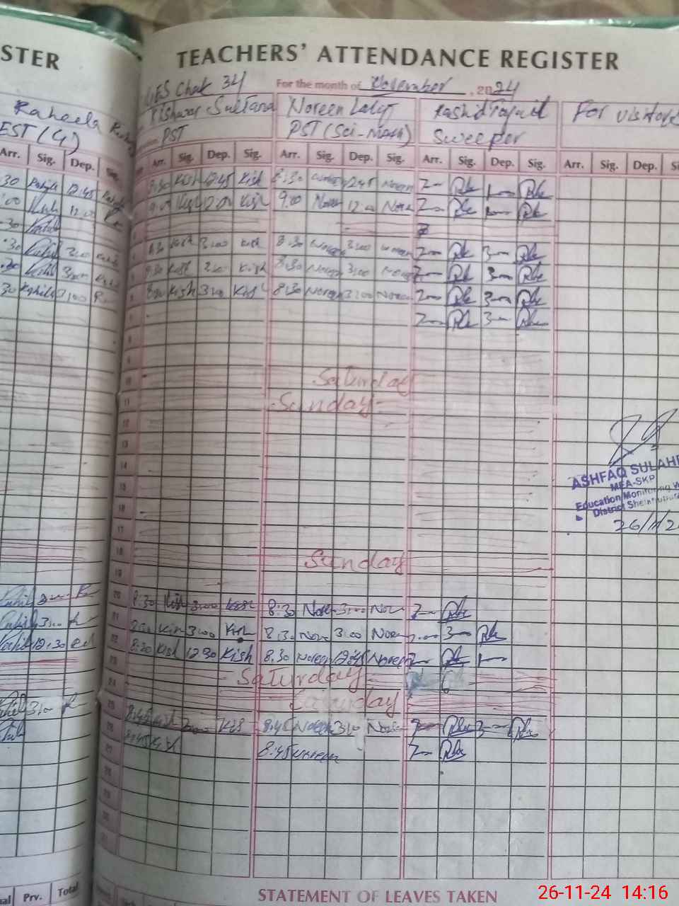 | Monitoring Date: 26-11-2024 | Start Time: 26-11-2024 01:29 PM | End Time: 26-11-2024 02:17 PM | Name of MEA: Mu**** As**** | |