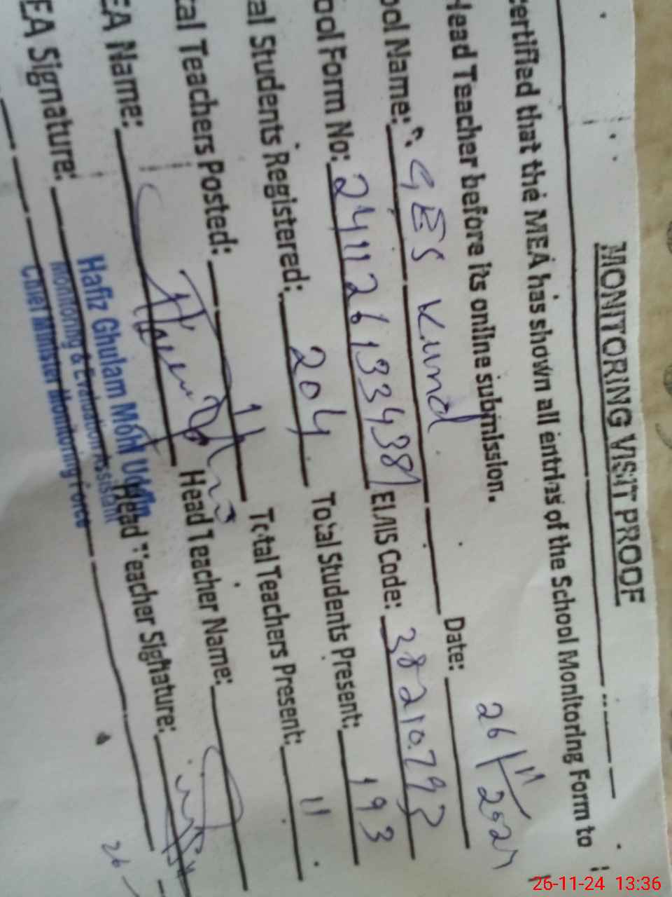 | EMIS Code: 38210793 | Name of School: GES KUND | |||