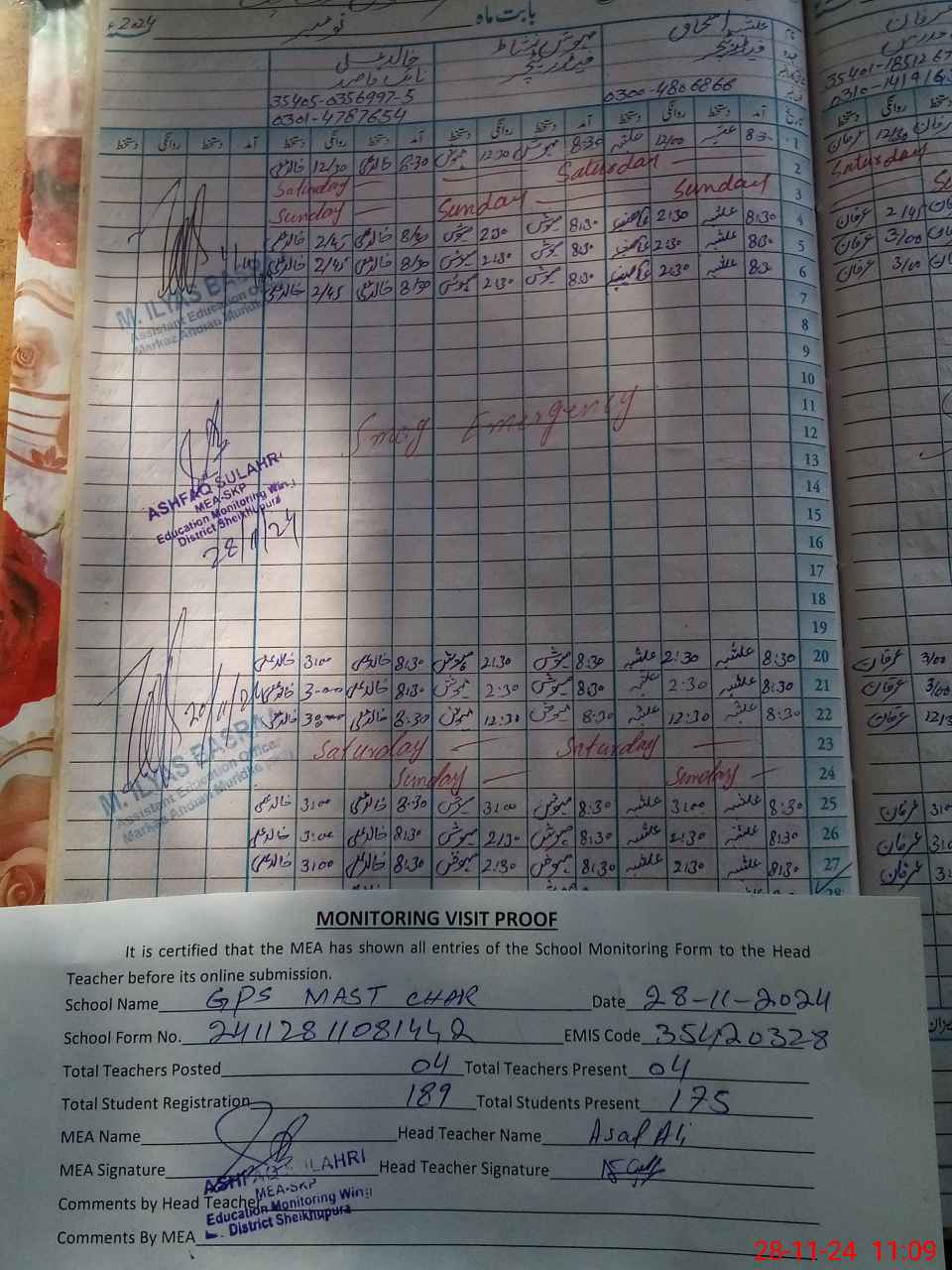 | EMIS Code: 35420328 | Name of School: GPS MAST CHAK | |||