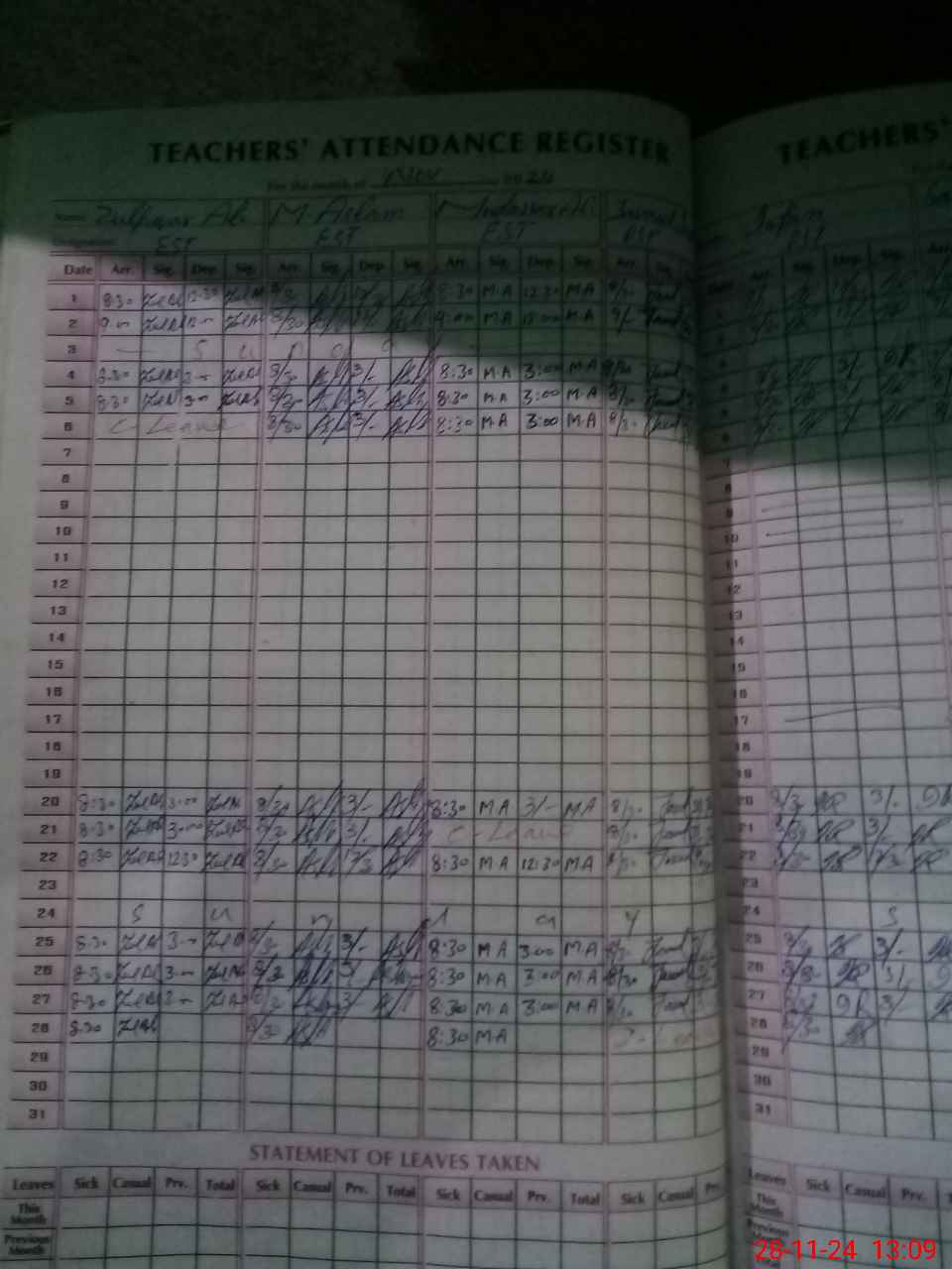 | Leave | Duty | Absent | Maternity | Medical | Ex- Pak |