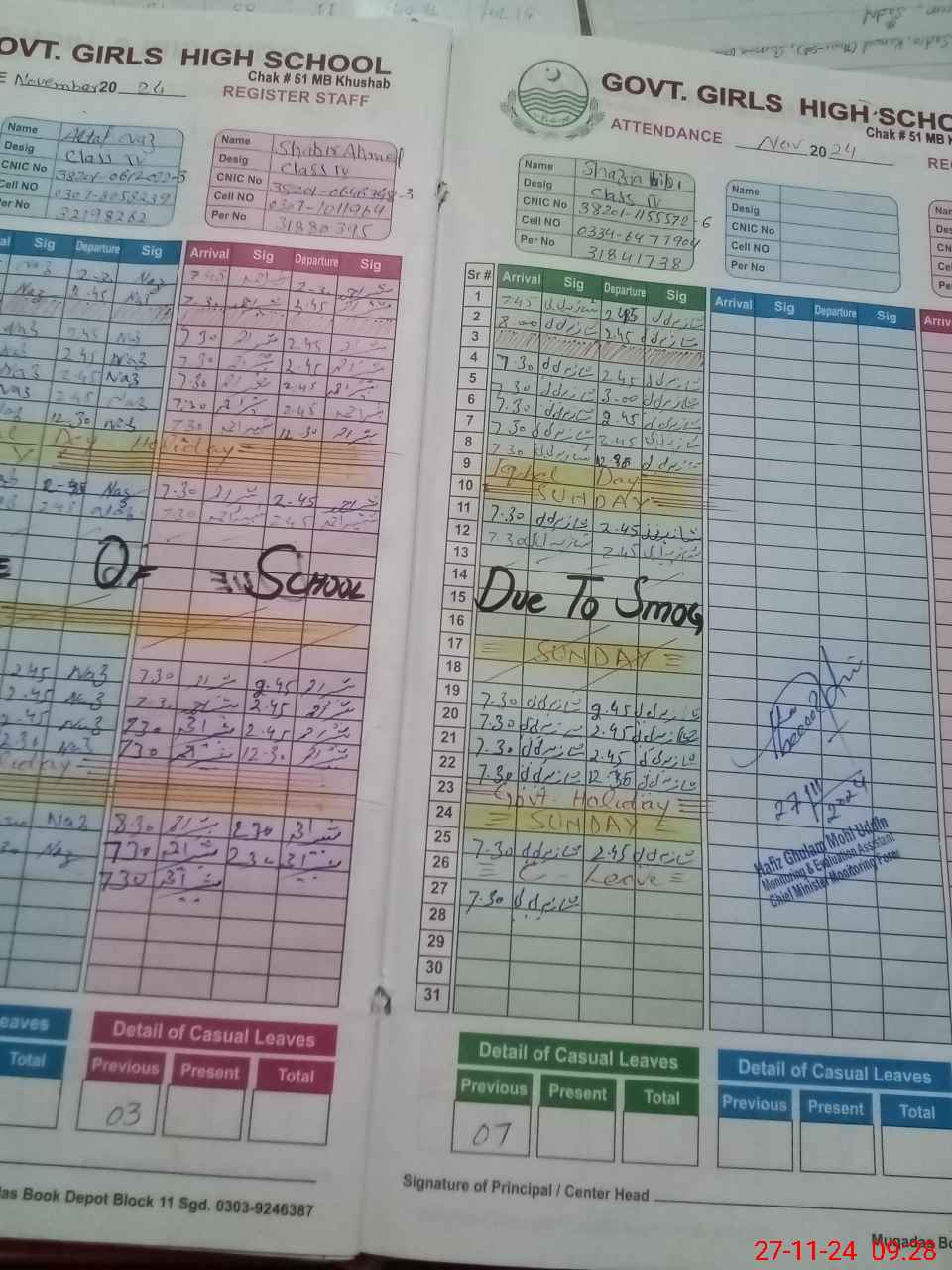 | CNIC | Full Name | Designation | R/C | Absence During Last Calender Month |