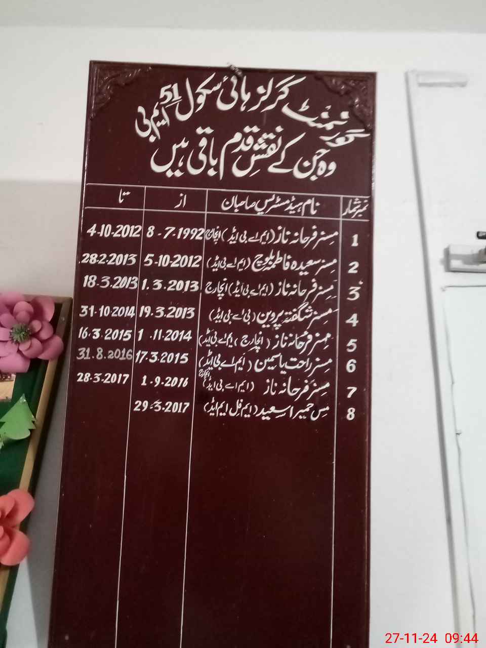 | Name: Hu**** Sa**** Designation: (School Headmaster's/Headmistress's) (Head Mistress) Phone/Cell Number: 03**** |