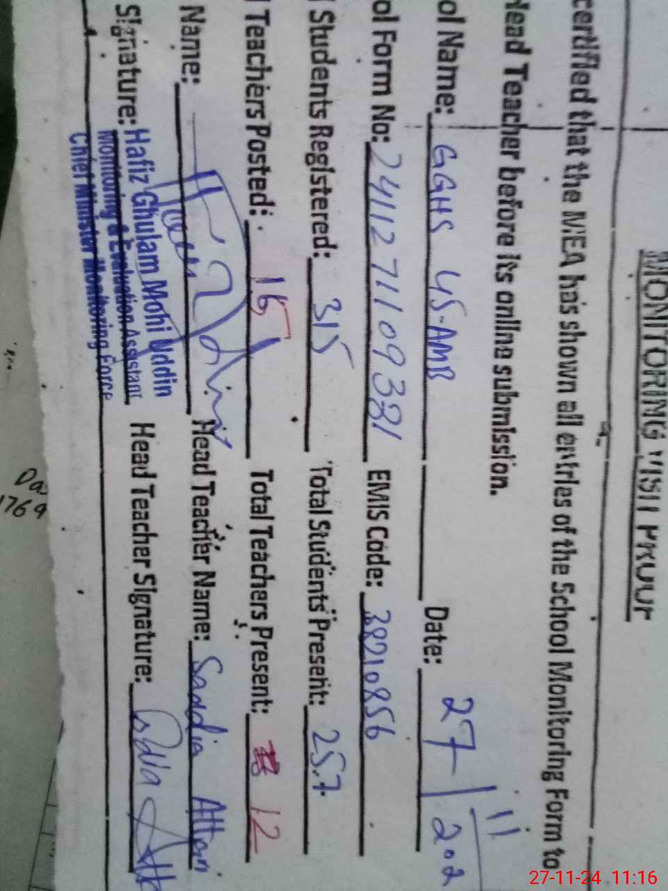 | EMIS Code: 38210856 | Name of School: GGHS CHAK NO. 45-AMB | |||
